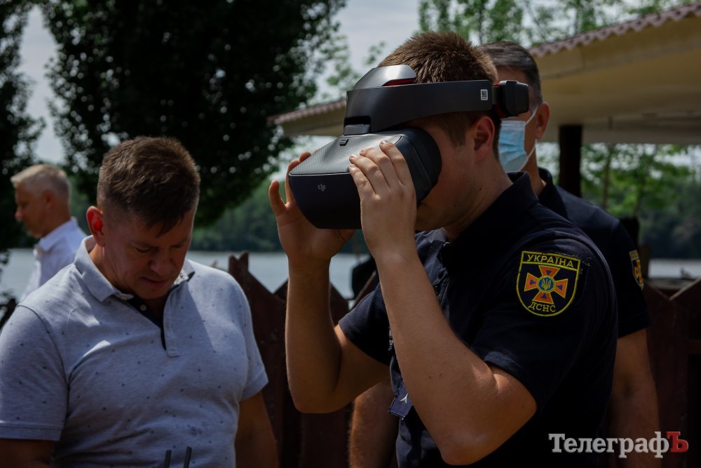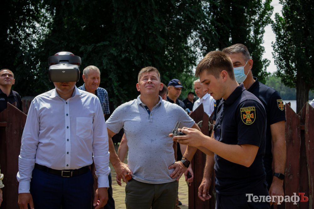За рятувальною місією спостерігав мер Кременчука Віталій Малецький, віцемери та депутати. Побачити всі деталі вони могли за допомогою системи з дрона та спеціальних окулярів: вона дозволяє розгледіти навіть дрібниці на досить значній відстані. Такий пристрій нещодавно придбали для служби ДСНС міста за 80 тисяч гривень.