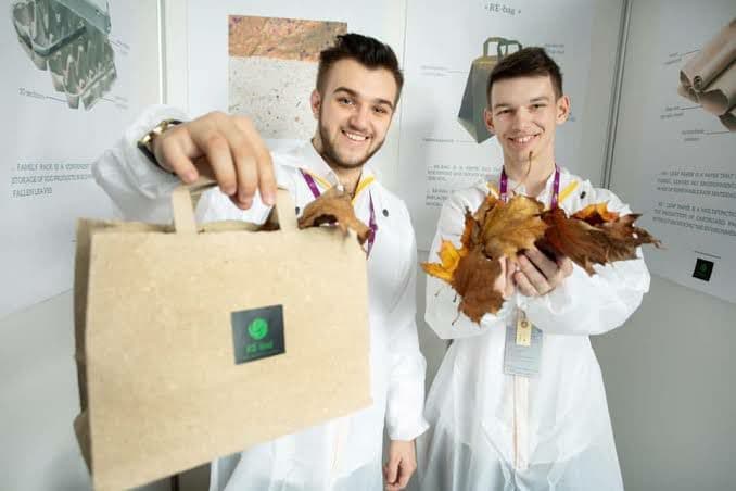 Український стартап Re-leaf запустив продаж пакетів із опалого листя. Засновник стартапу – Валентин Фречка, який ще в 11 класі вигадав, як виготовляти папір із осіннього листя замість того, аби його спалювати. Ідею школяра підтримали на Житомирському картонному комбінаті та спробували технологію в дії. Такий папір став чудовим для екопакування. Тож тепер його продають просто як папір, у рулонах та аркушами, а також як паперові пакетики.