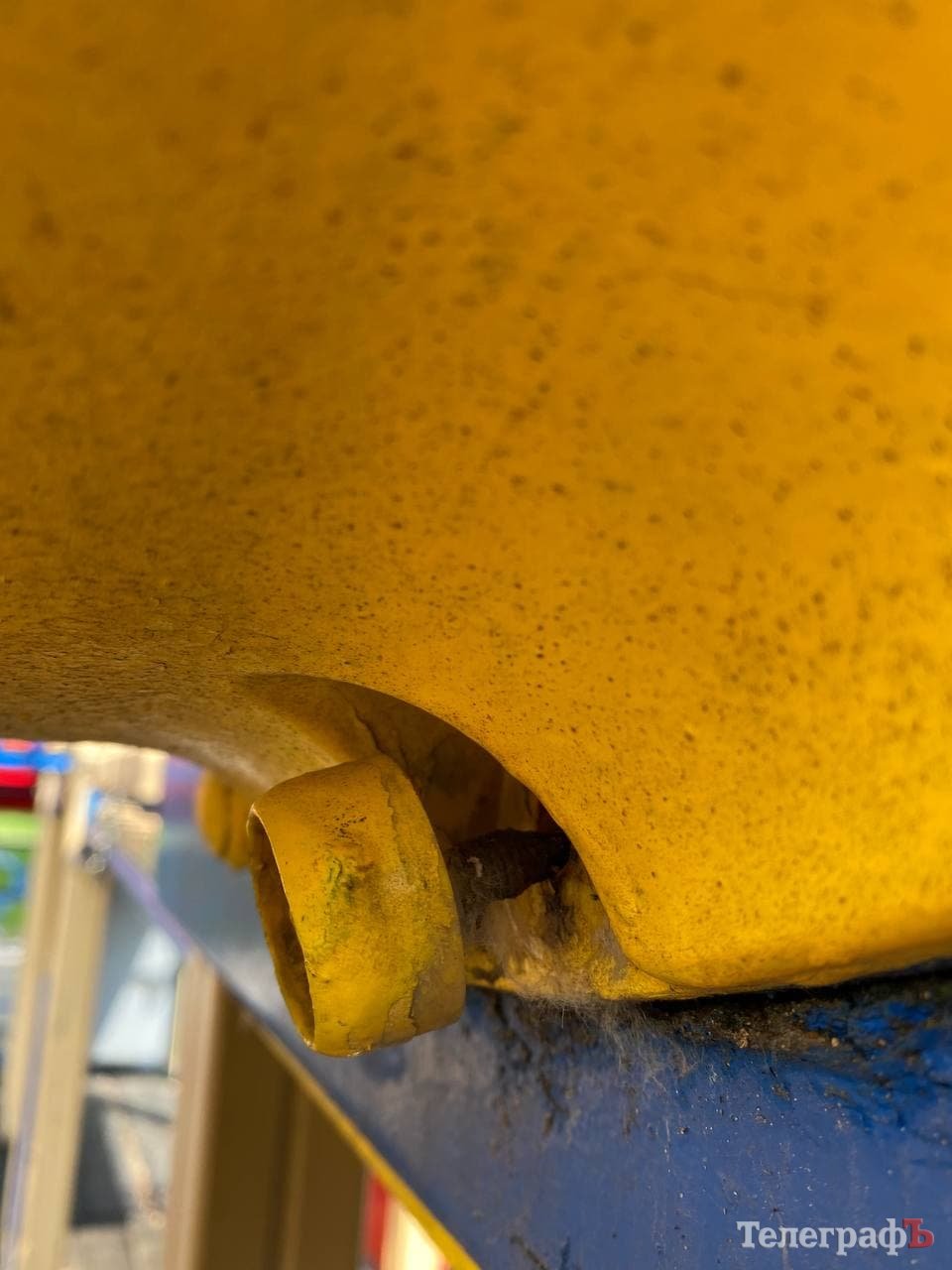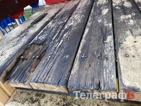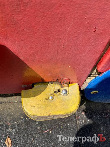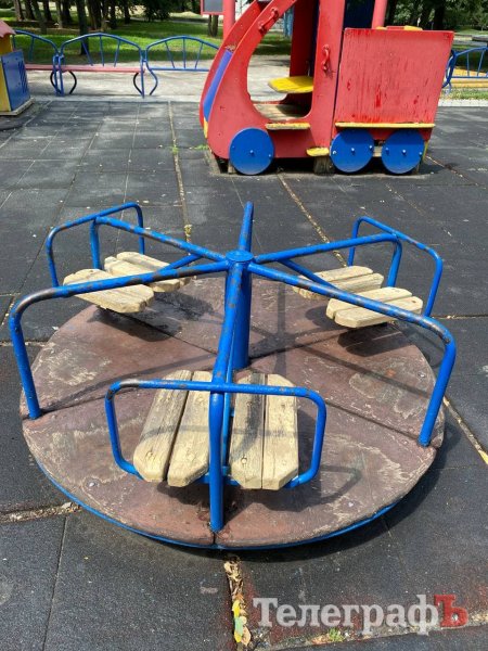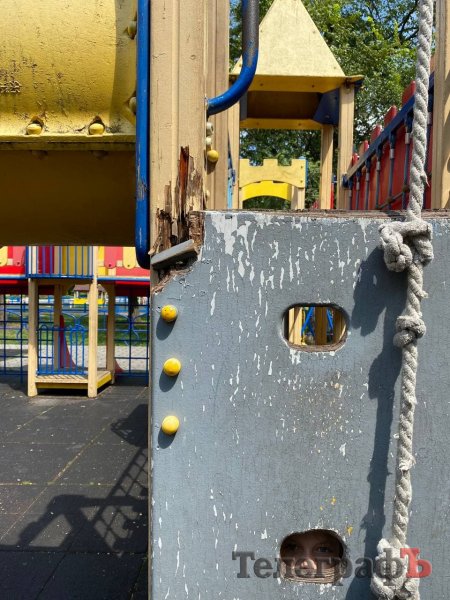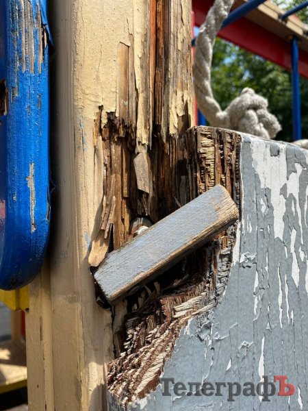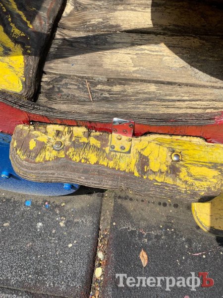 Час минав, діти виростали, приходили інші - а майданчик поступово руйнувався. Здається, окрім яскравого фарбування мало що робиться: подекуди гойдалки поламані, стирчать потенційно небезпечні цвяхи та болти, деревина розсипається. Надпис «Roshen» давно замалювали, тож ми запитали у Олександра Мірошніченко, на чиєму балансі знаходиться об'єкт та хто відповідає за його стан.