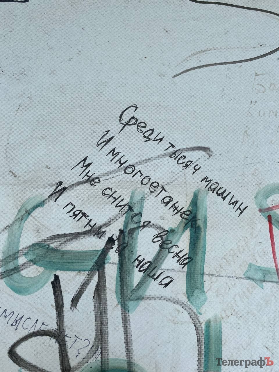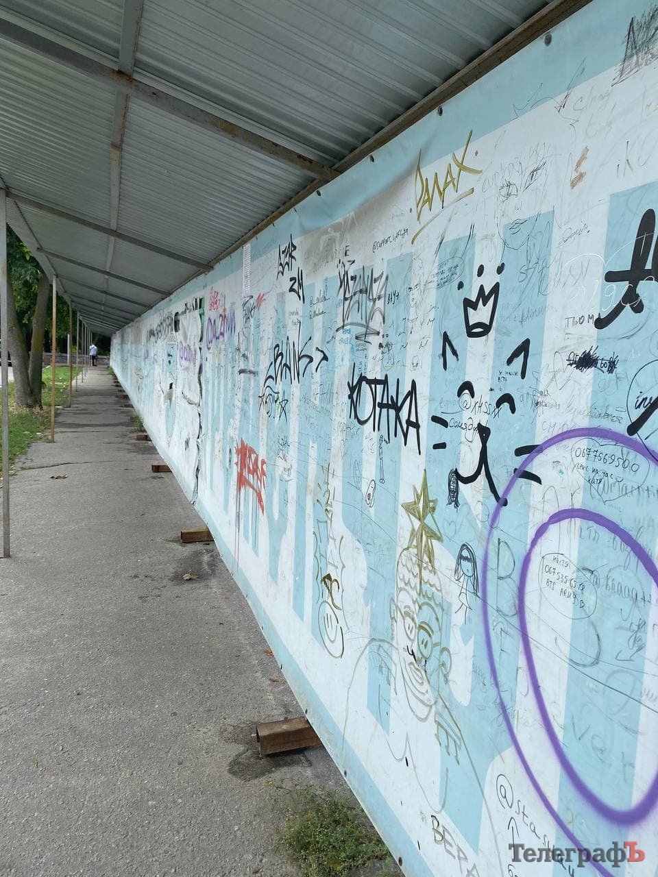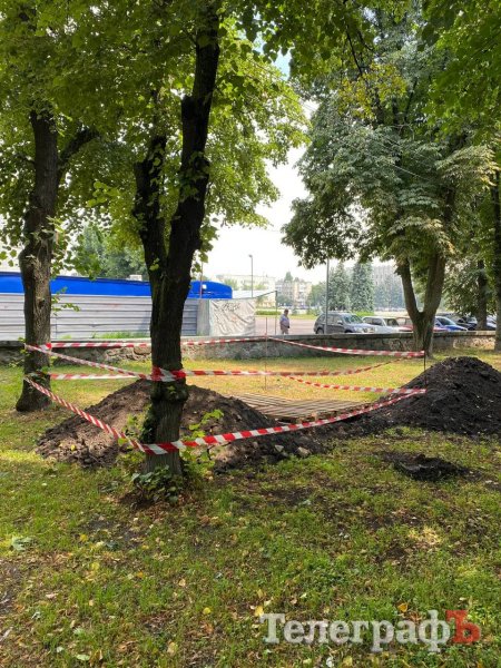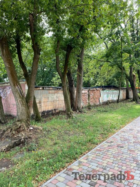 Полотна брезенту, що прикривають недобудови від чутливого ока кременчужан, поступово претворюються на своєрідні «витвори мистецтва». Тут і малюнки, і непристойні написи, і навіть вірші з претензією на філософський зміст. Відкритим залишається питання, чи дійсно вони прикрашають парк – але альтернатив у цьому питанні дирекція поки що не бачить.