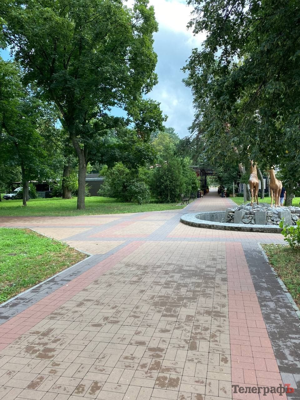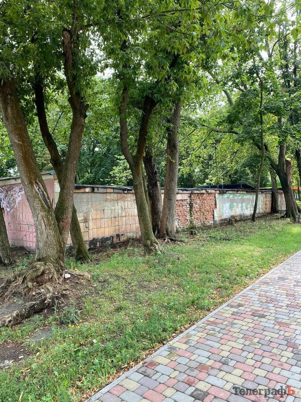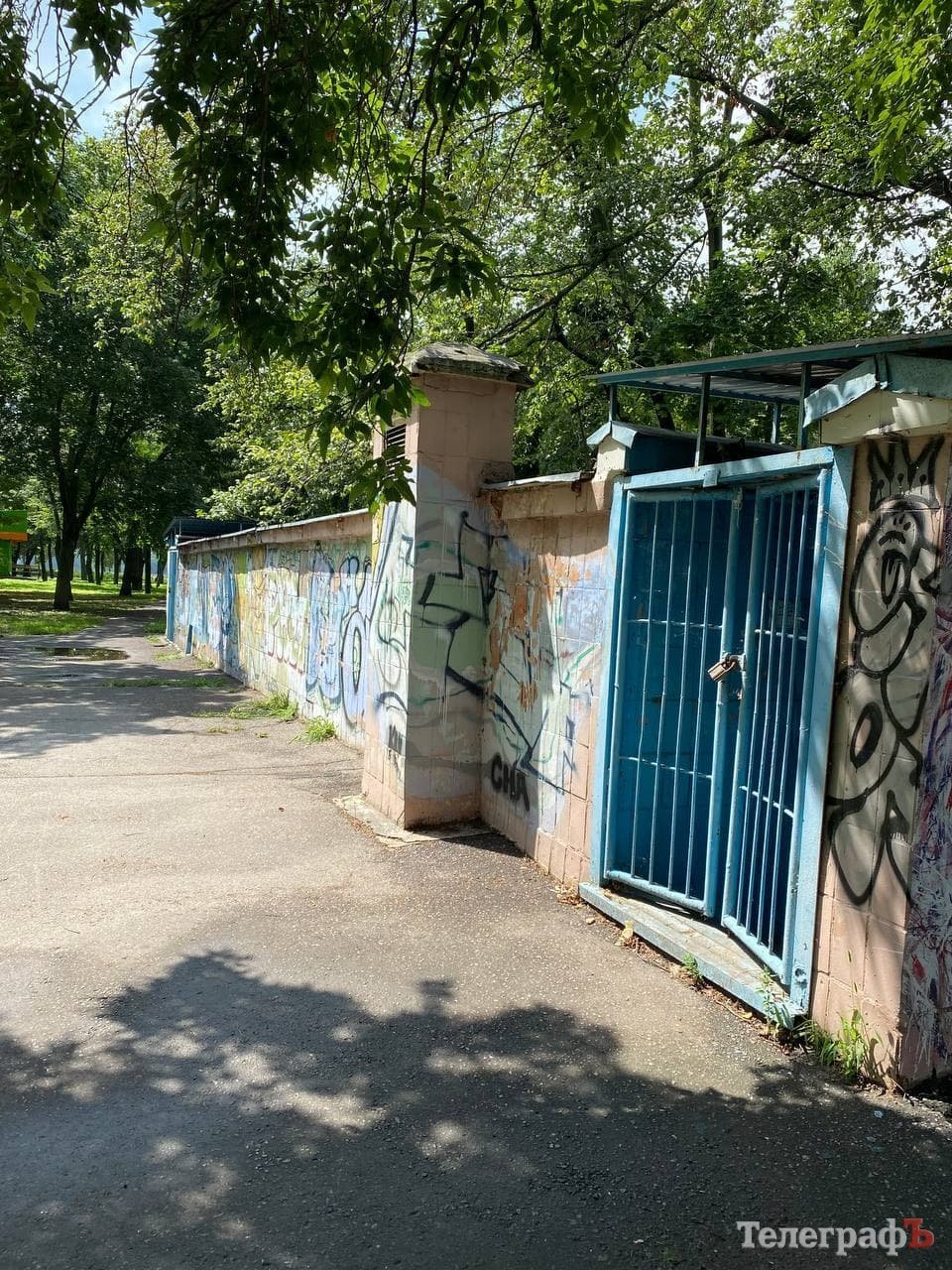 Мабуть, кожен мешканець міста одразу згадає ці об’єкти, більшість з яких закрита банерами «Я люблю Кременчук». Обабіч центральної алеї нас гостинно зустрічають два павільйони, незрозуміло для чого збудовані багато років тому. Банери з них вже прибрали – адже негода та любителі стріт-арту добряче над ними попрацювали.