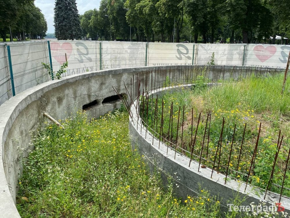 Трохи далі на центральній алеї парку бачимо каркас фонтану, що рясно заріс бур’янами. Ми задалися питанням, коли і хто збирається завершити цю потенційну прикрасу парку? Як виявилося, тут плани є, і вони мають досить високі шанси бути втіленими в життя.