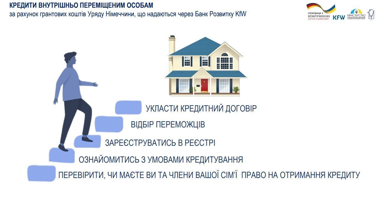 Найперспективнішою на сьогодні є нова програма — кредит для ВПО (внутрішньо переміщених осіб) під 3% річних, яка реалізується спільно з урядом Німеччини. З неї й почнемо наш огляд.