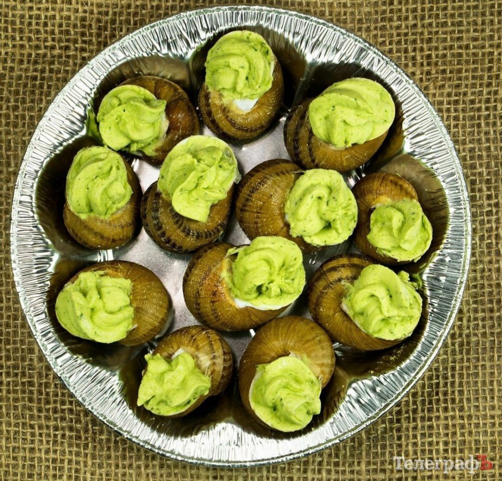 Потом отделяют панцирь от улитки, убирают кишечник и отдельно варят «ножки». Потом отваренную улитку возвращают в панцирь. А дальше улиток можно готовить и подавать с чем угодно. Соус может быть любым, в зависимости от вкусовых предпочтений: грибной, острый, по-бургундски.