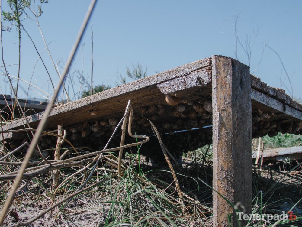 Обычный огород, где все привыкли видеть картошку и морковку, теперь стал домом для улиток. Сложно представить, что их на небольшом участке более 700 тысяч! Улиток совсем не видно: виднеются только выставленные в ряд деревянные «крыши» улиточных «домиков». Как раз под ними днем прячутся улитки, а к вечеру выходят «ужинать».