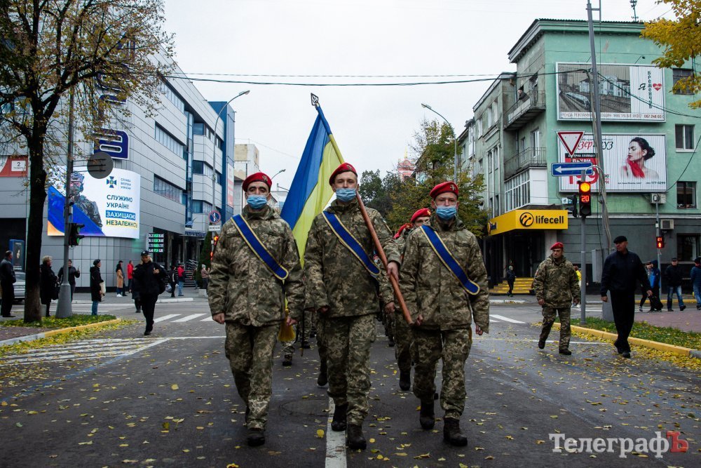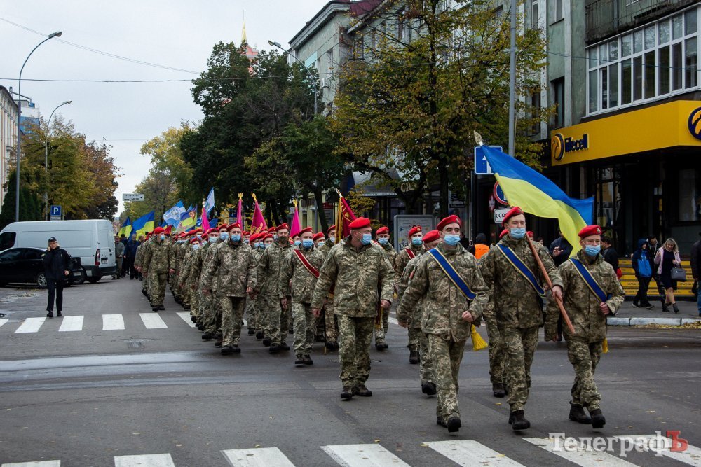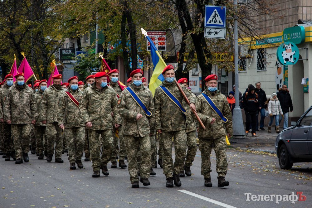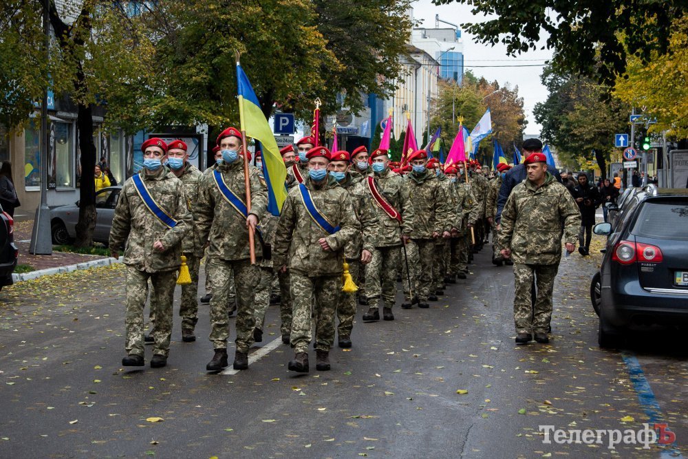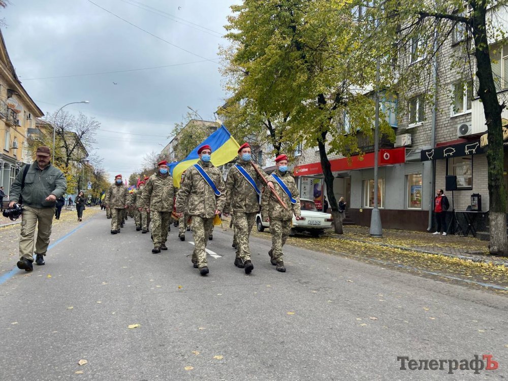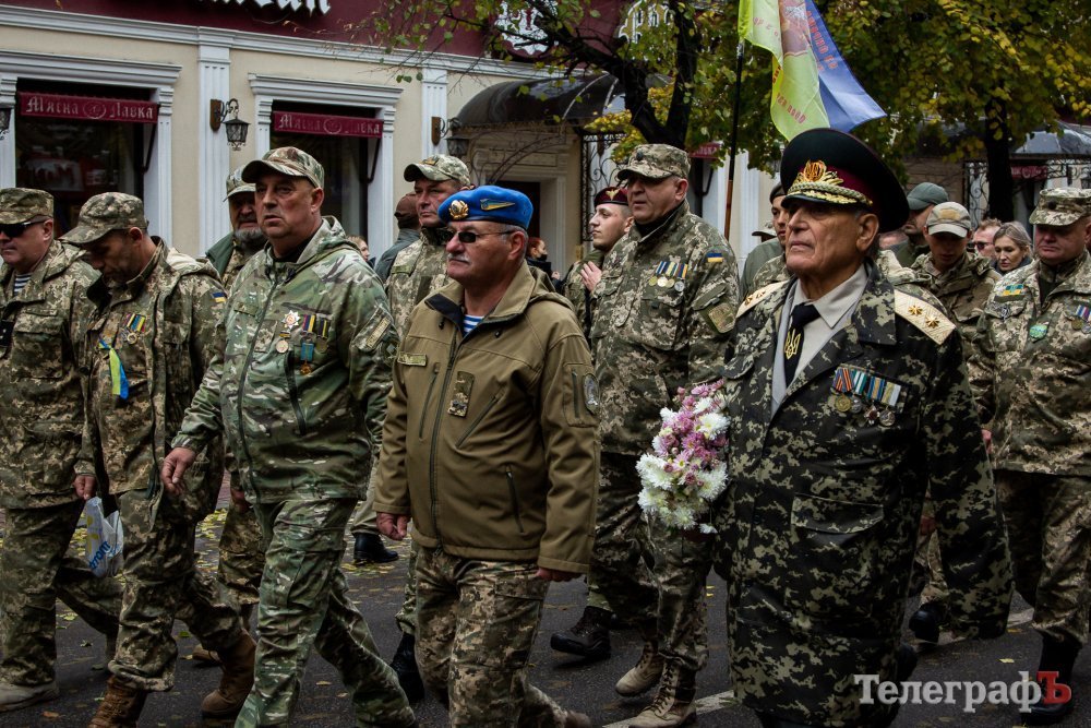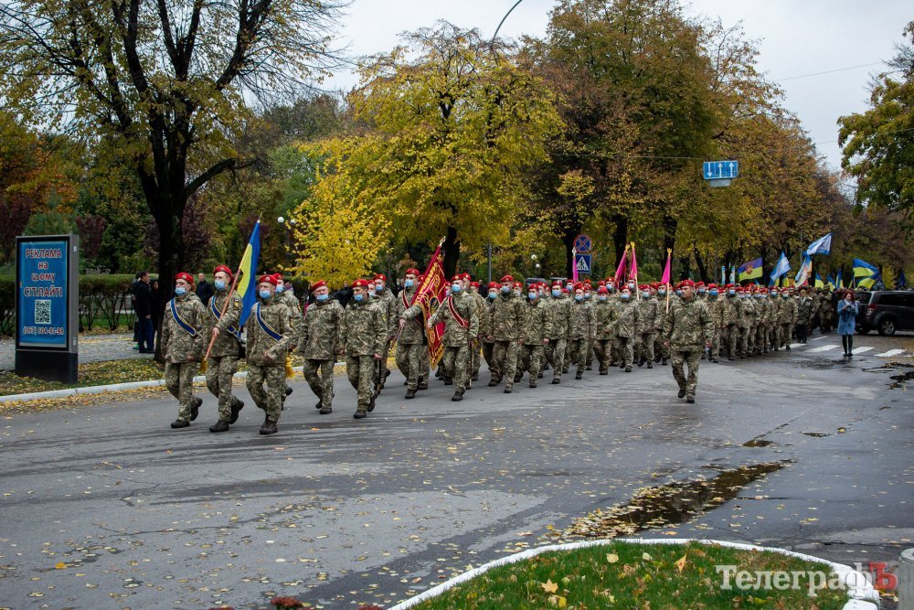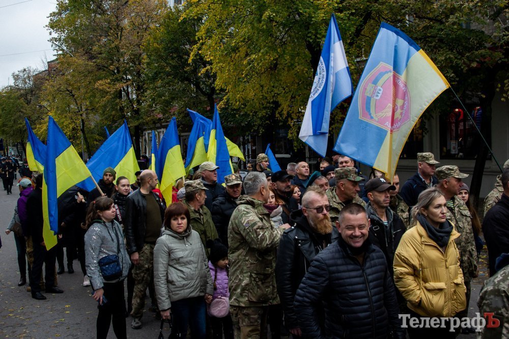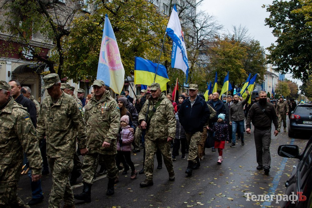 Сьогодні, 14 жовтня, вперше у Кременчуці ветерани та військові російсько-української війни маршем пройшлися центральною вулицею Кременчука. Колона вирушила від палацу культури Кредмаш до площі Перемоги.