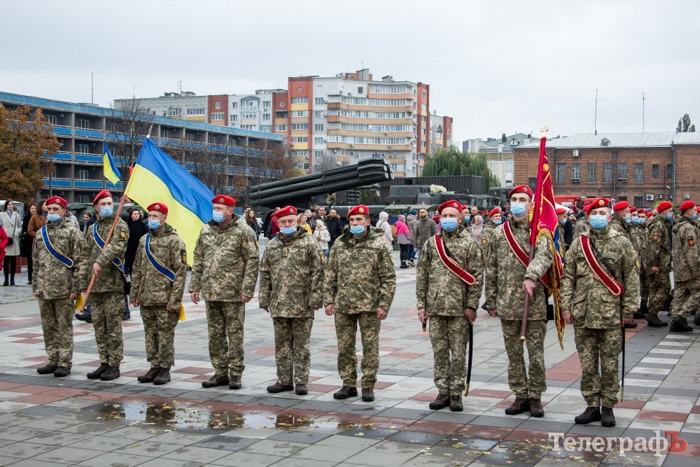 На площі військових зі святом привітав міський голова Кременчука Віталій Малецький, командир військової частини А-1546 полковник Олександр Келембет та командир Кременчуцького батальйону Національної Гвардії України Олег Довгалюк.