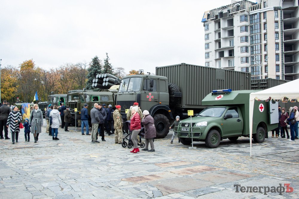 На площі Перемоги відбулися урочистості та концертна програма. Містяни ближче ознайомилися з військовою технікою 107-ї Кременчуцької реактивної артилерійської бригади, Кременчуцького районного управління ГУ ДСНС України в Полтавській області, поліції та нацгвардійців.