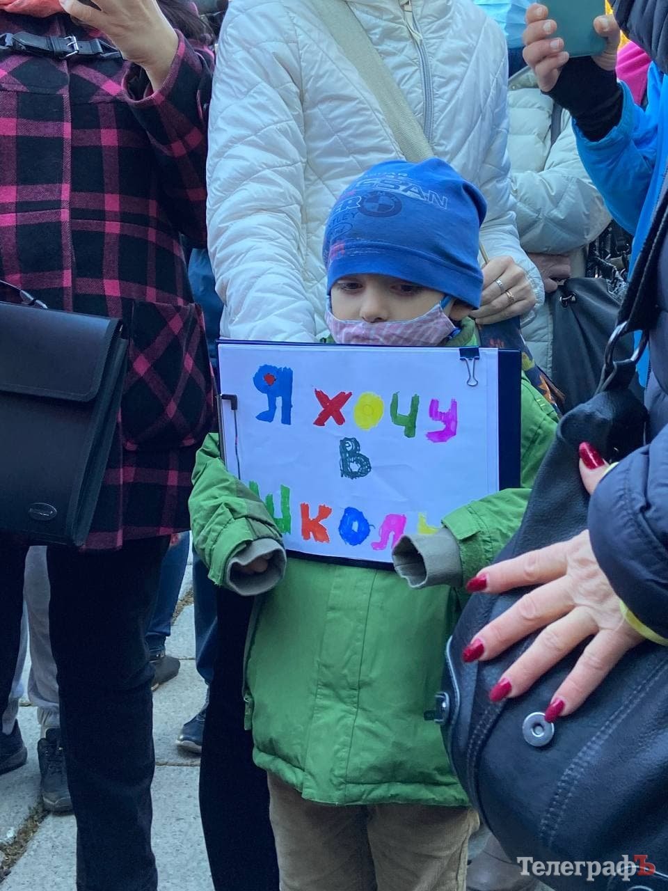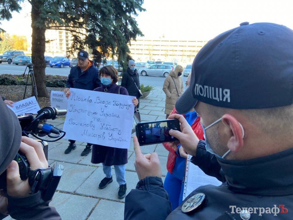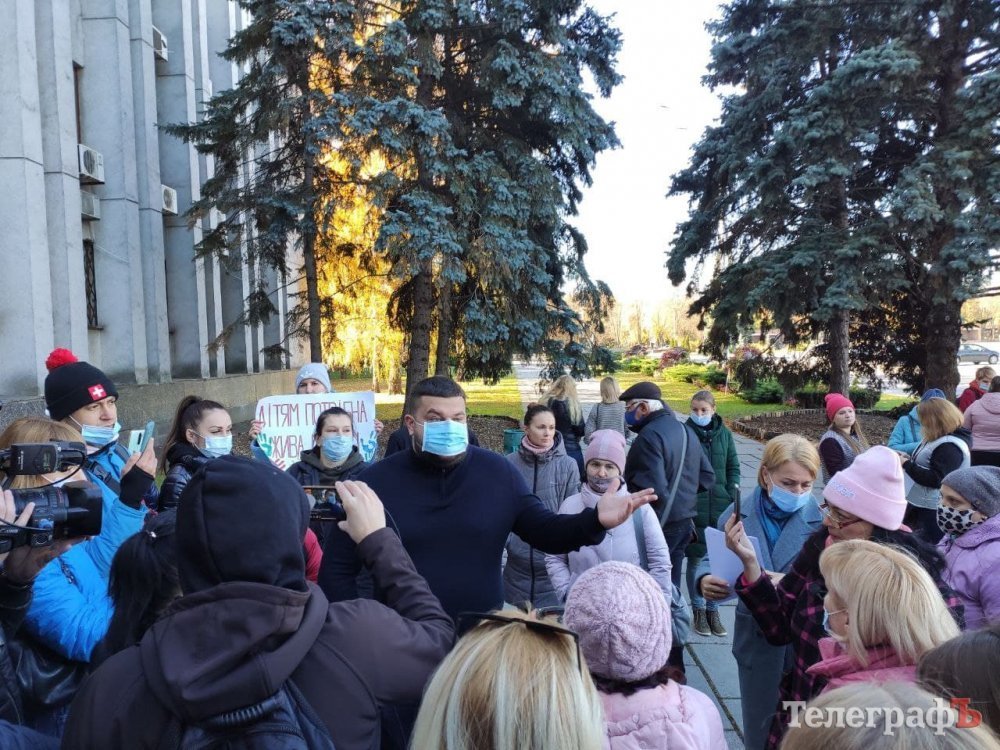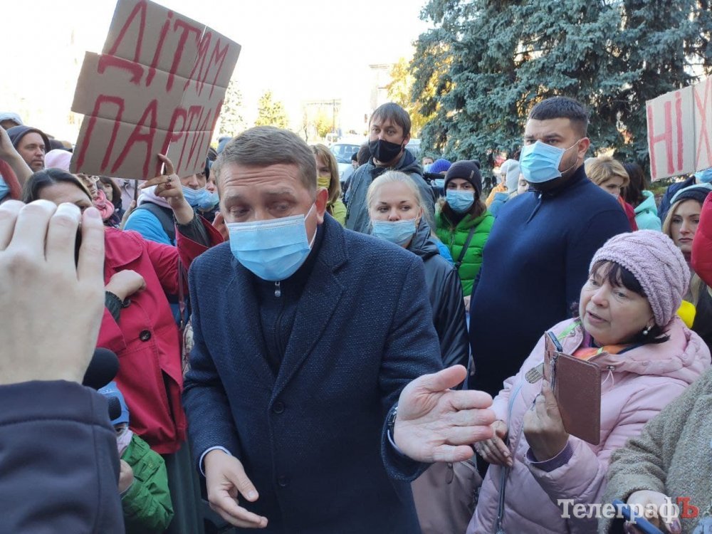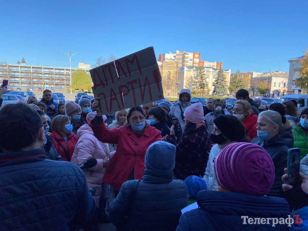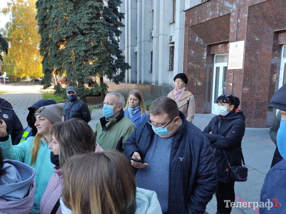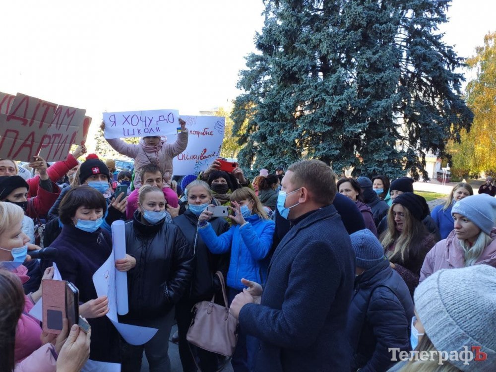 Зранку 25 жовтня батьки кременчуцьких школярів пікетують мерію, бо вони проти дистанційного навчання.