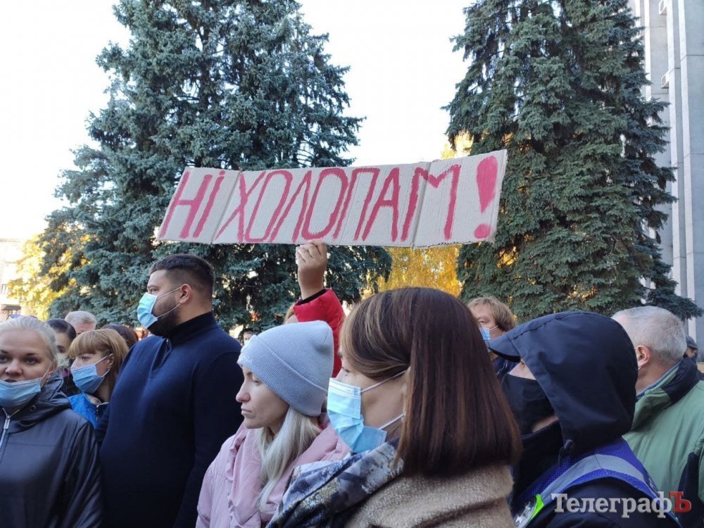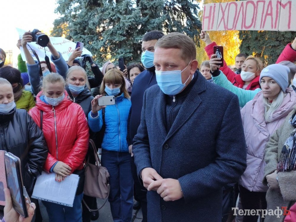 10.20. Як передає кореспондент Т, на мітинг прийшли 60-70 кременчужан. Активісти періодично викрикують заклики до мера вийти до людей. Серед присутніх є й антивакцинатори, які теж намагаються взяти слово.