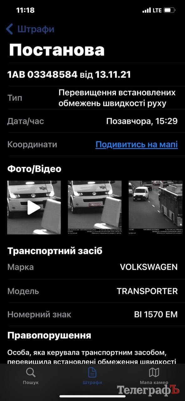 Рухаючись по вулиці Маршала Бірюзова з увімкненою сиреною та проблисковими маячками, «швидка» попала в поле зору камери автоматичної фіксації порушень. За даними камери, швидкість автомобіля становила 104 км/год при допустимих 50 км/год. Як результат був виписаний штраф у розмірі 1 700 гривень.