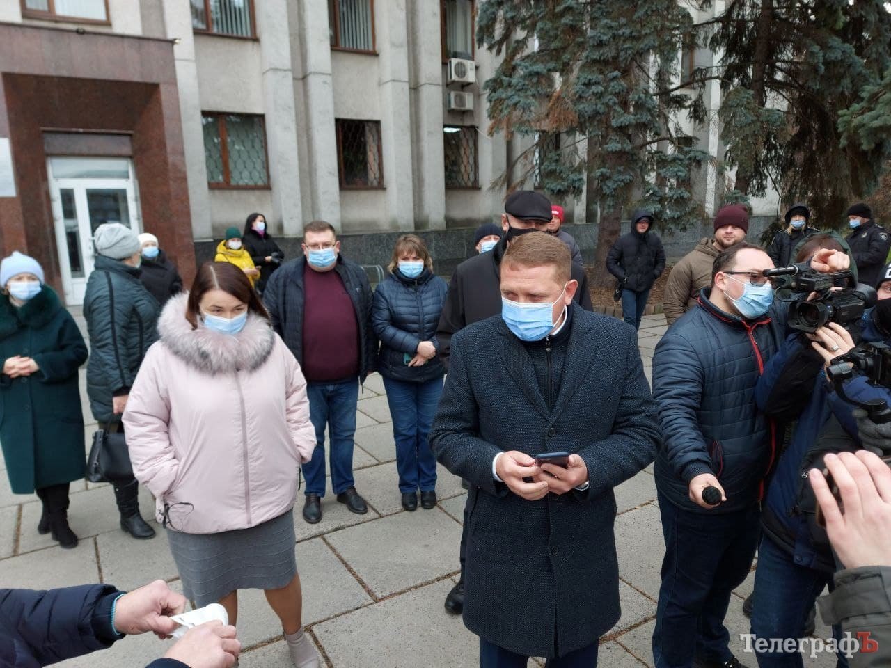 Зайшли в мерію, тим, хто пред’явив QR-код, дозволили говорити з охоронцем. Від усіх присутніх в мерії вимагають сертифікати. Якщо немає – просять на вихід.