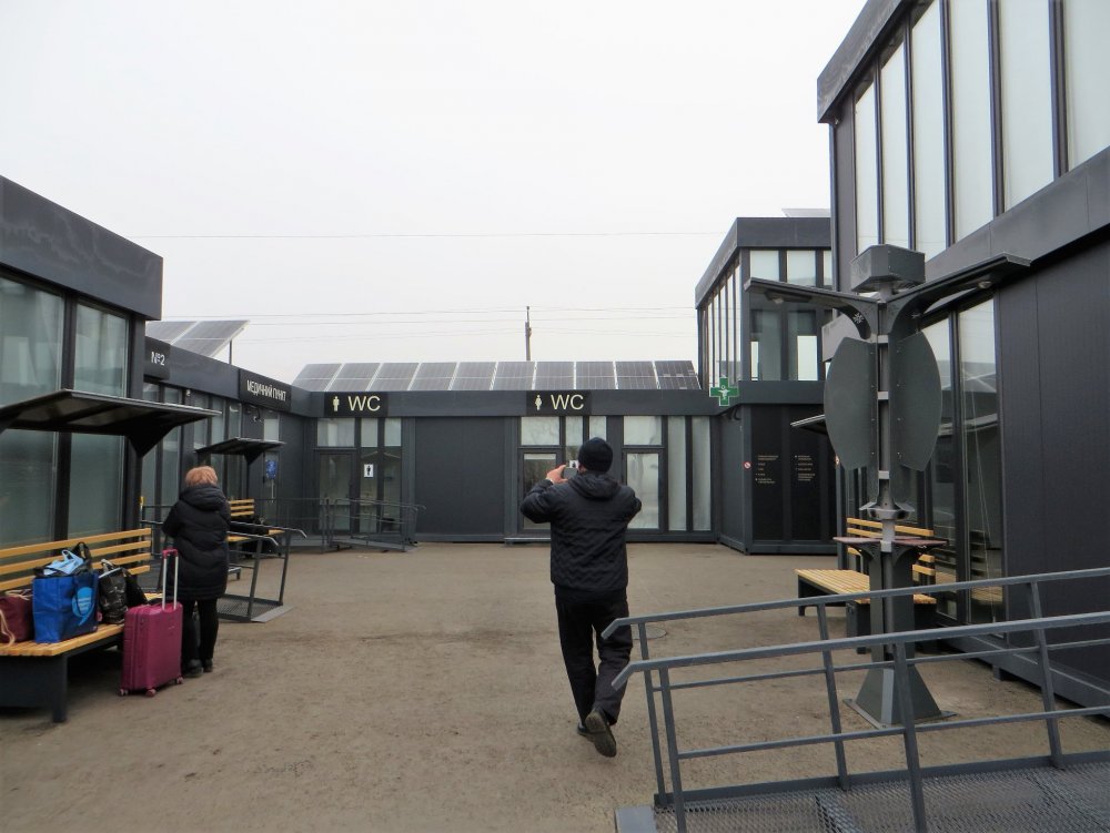 На КПВВ «Щастя» ми побачили такий самий сервісний центр, адже будувалися вони за одним проєктом. А от на КПВВ «Станиця Луганська», через яке проходить найбільше людей, нова сервісна зона ще будується – її обіцяють ввести в експлуатацію найближчим часом. На здивовані питання журналістів, чому в першу чергу відкрили сервісні зони на КПВВ «Золоте» та «Щастя», які наразі не здійснюють пропуск людей, а не на «Станиці Луганській», через яку людей пропускають, нам дали аргументовану відповідь.