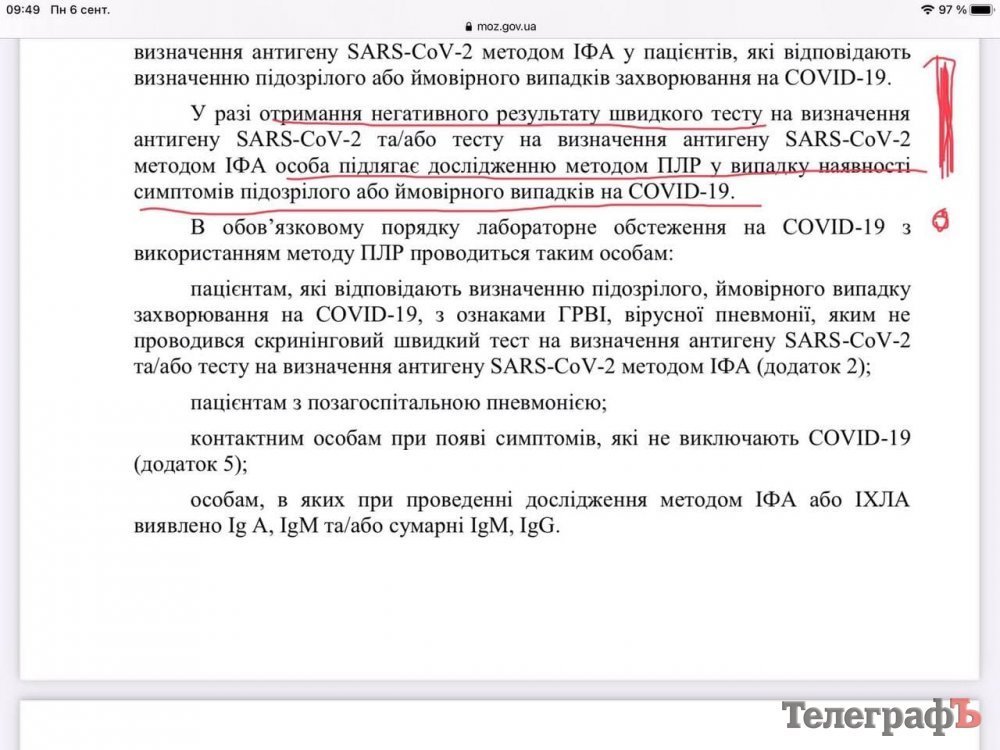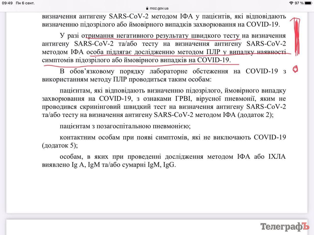 А в наказі МОЗ чітко прописано, що за наявності підозри на COVID-19 та негативного тесту на антиген потрібно дообстежити пацієнта методом ПЛР.