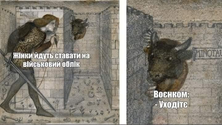 Сам похід до центру комплектування, який раніше називався військкоматом, був схожий на мем: «Жінки йдуть ставати на військовий облік. Воєнком: Уходітє».
