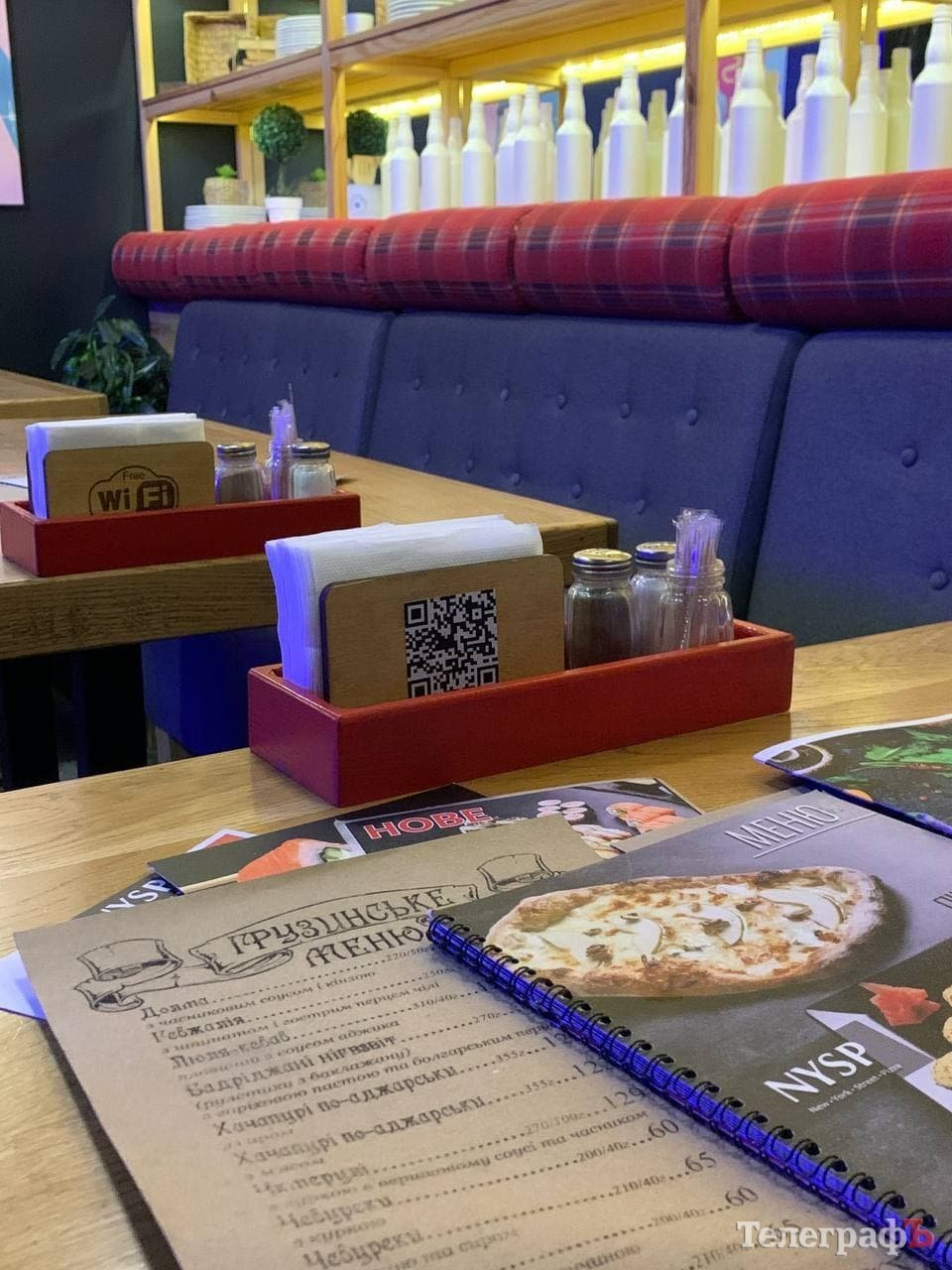 Розмітки з дистанцією по якій мають пересуватися відвідувачі також немає. На кожному столику розміщений QR-код з меню, але офіціант все одно дає звичайне.