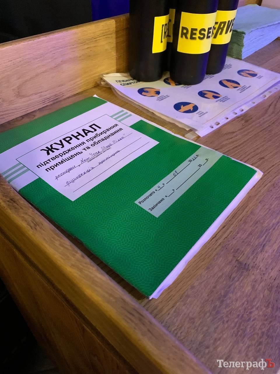 У залі розташована зона для дезінфекції рук з антисептиком та серветками, попри це, ще у вільному доступі є журнал прибирання приміщень та обладнання.