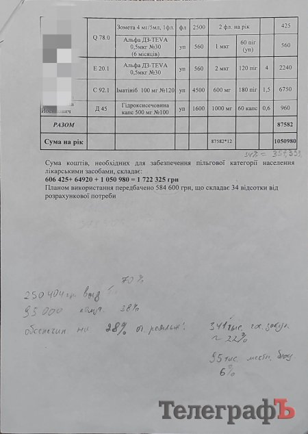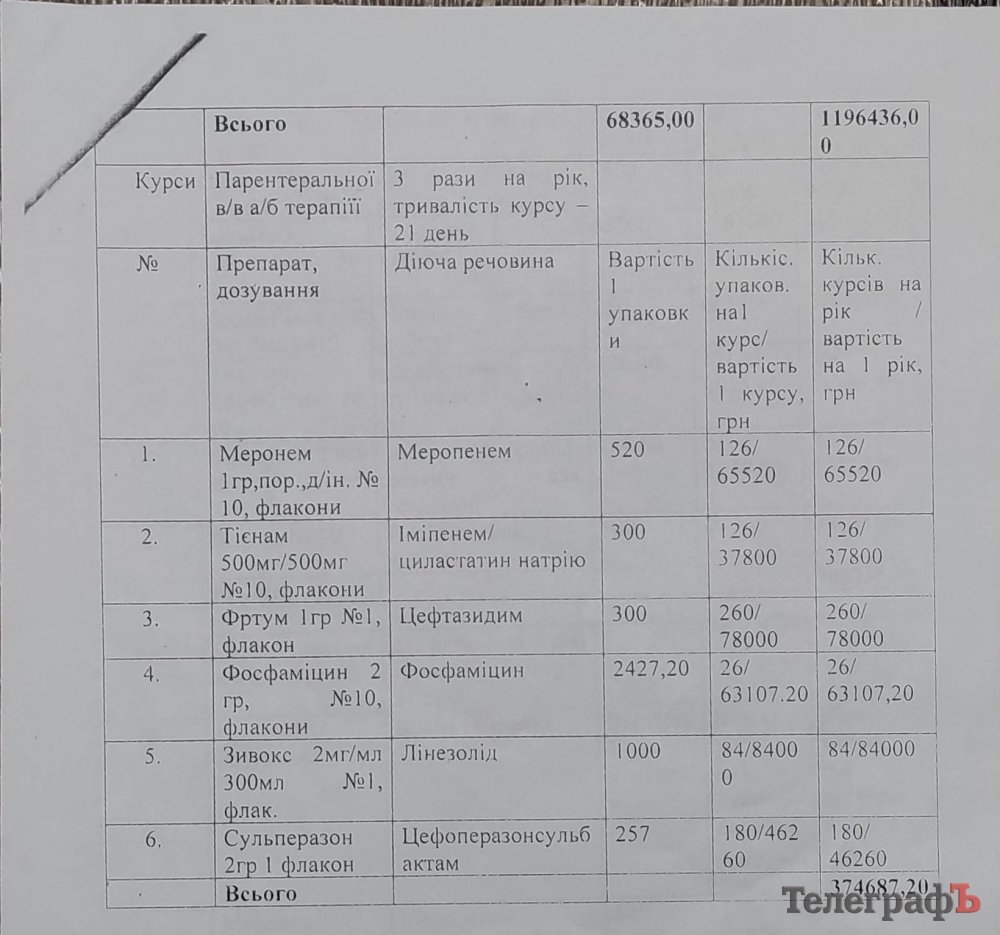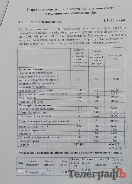 Попри заяву на адресу департаменту охорони здоров’я з проханням не занижувати реальні потреби в ліках, наступного року ситуація повторилася: замість 1 633 333 гривень у бюджеті значиться цифра 1 116 718 гривень.