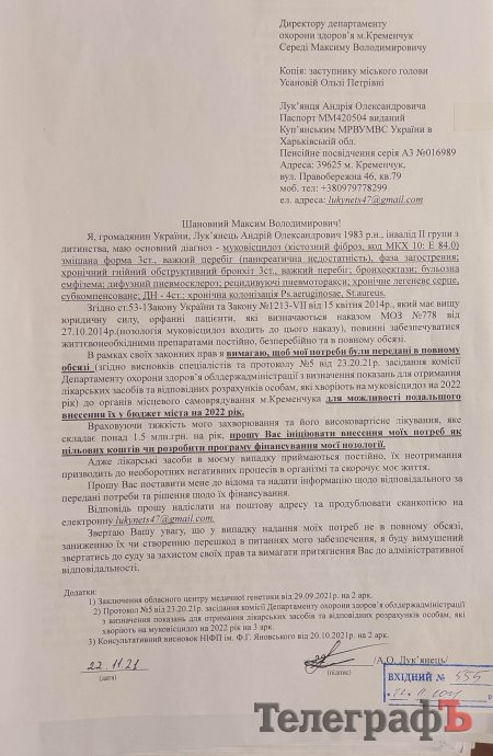 «ТелеграфЪ» теж надіслав пану Середі інформаційний запит щодо кількості людей, хворих на муковісцидоз в нашому місті та того, наскільки вони забезпечені ліками – але відповіді у встановлений законом термін не отримав.
