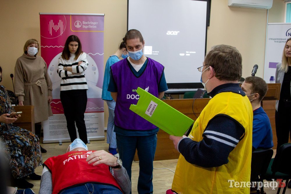 На наступному етапі медикам запропонували наочно проодемонструвати, як відбувається процес – від моменту, коли «швидка» доставила пацієнта і до початку тромболізису. Серед присутніх обрали представників усіх ланок: працівника «швидкої», медсестру та лікаря. Ще один лікар взяв на себе роль пацієнта. Усім роздали матеріали з даними та інструкціями, привезли каталку, і процес розпочався. Звісно, все відбувалося трохи не так, як буває насправді, але не можна було не відзначити професіоналізм та злагодженість роботи команди.