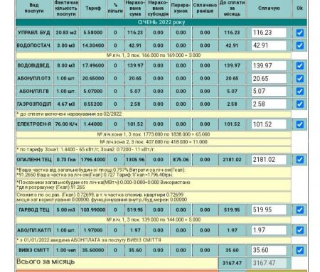 У жодній з платіжок немає нічого близького до суми 2186 гривень - як у січні цього року. Найвищий минулочний платіж був 1414 грн - за березень.