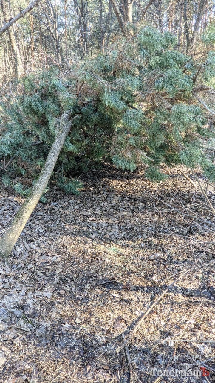Оглянули ліс та виявили там облаштовану з дерева, що впало, «халабуду» із відносно свіжими та давніми слідами взуття. Схоже, діти іноді приходять сюди бавитись.