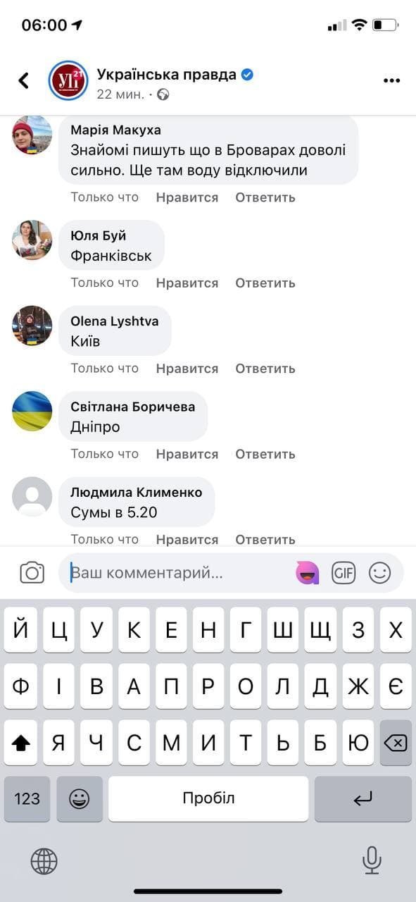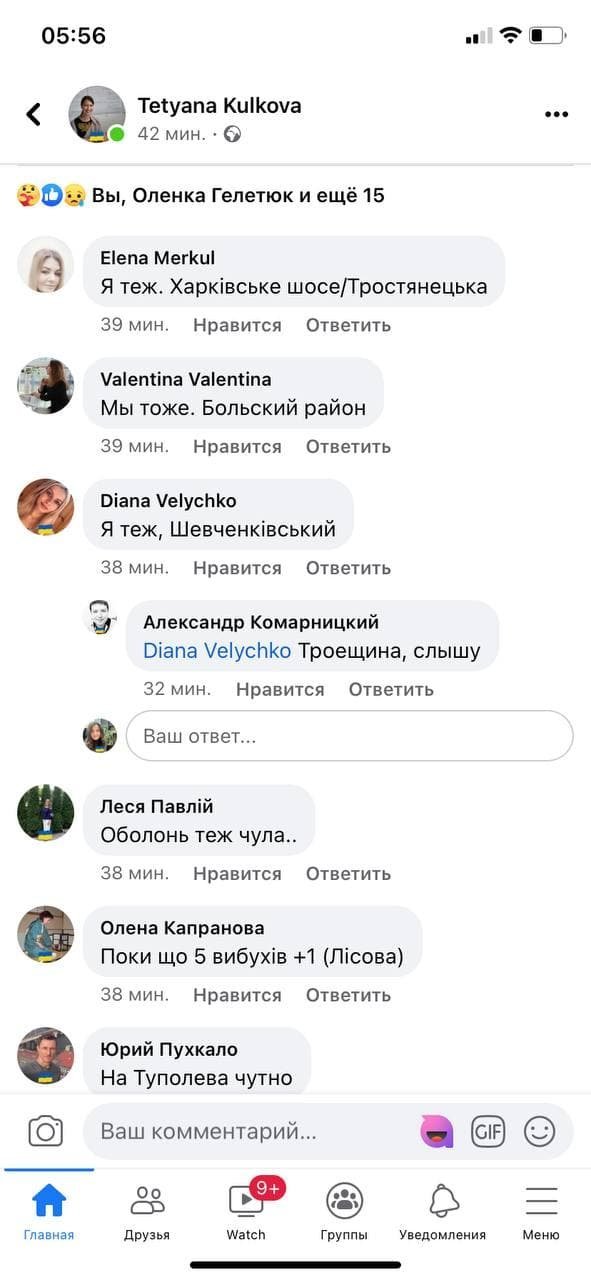 Користувачі фейсбуку пишуть, що чули вибухи в Києві. А під новиною на УП є коментарі про вибухи в різних українських містах.