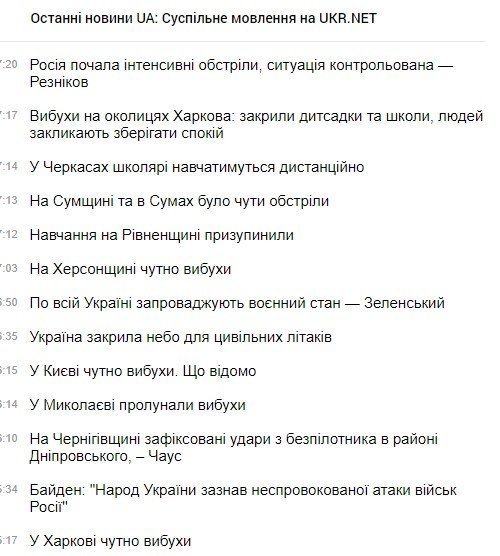 Про введення військ військову операцію на Донбасі Путін заявив у своєму зверненні. Спецоперація почалося о 5.00. ЗМІ повідомляють про вибухи в українських містах.