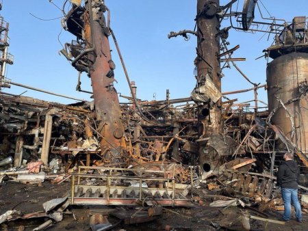 Видання «Цензор.нет» оприлюднило фотографії, як виглядає Кременчуцький нафтопереробний завод після ударів рашистських ракет.