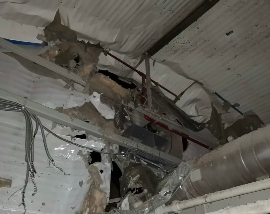 Ось такий вигляд має одна з частин інфраструктурної будівлі, яку «демілітаризувала» російська ракета. Начальник Полтавської обласної військової адміністрації сповістив, що, на щастя, після ворожого удару постраждалих немає. Та уточнив: обійшлося без пожежі.