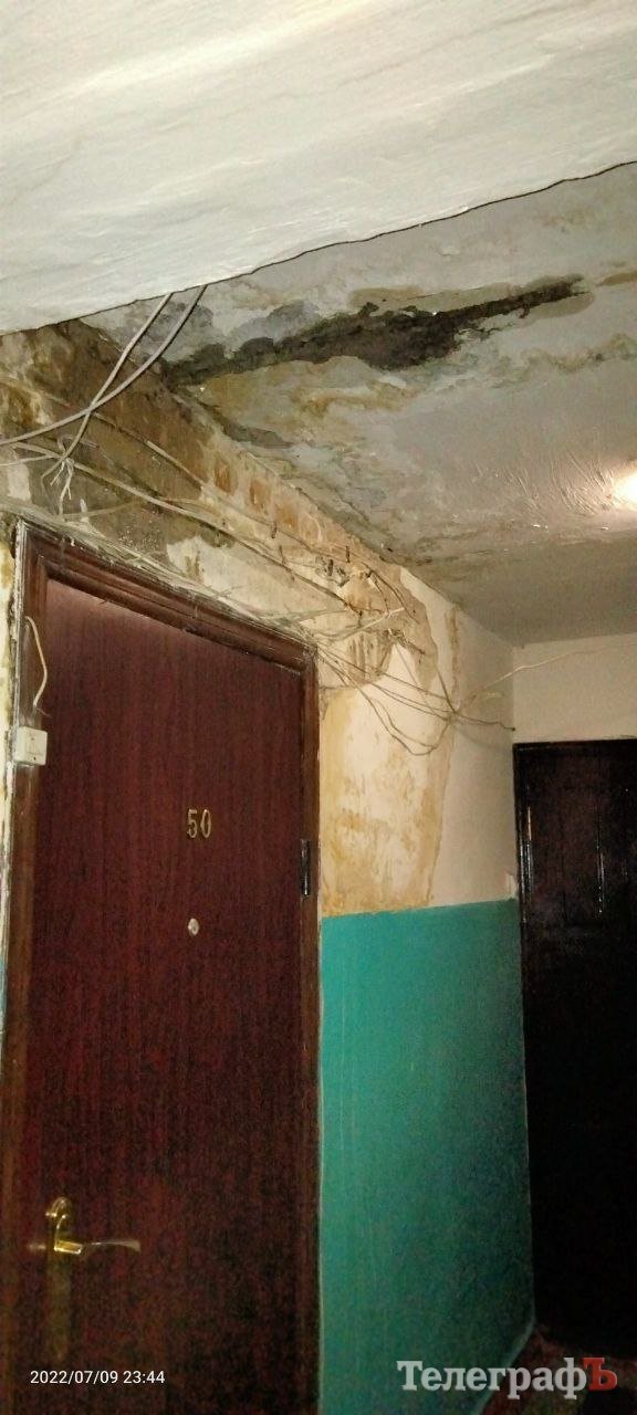 Пишу щодо води у під’їзді, тече дах на вул. Манагарова, 20, 5 під’їзд – підпис до фото
