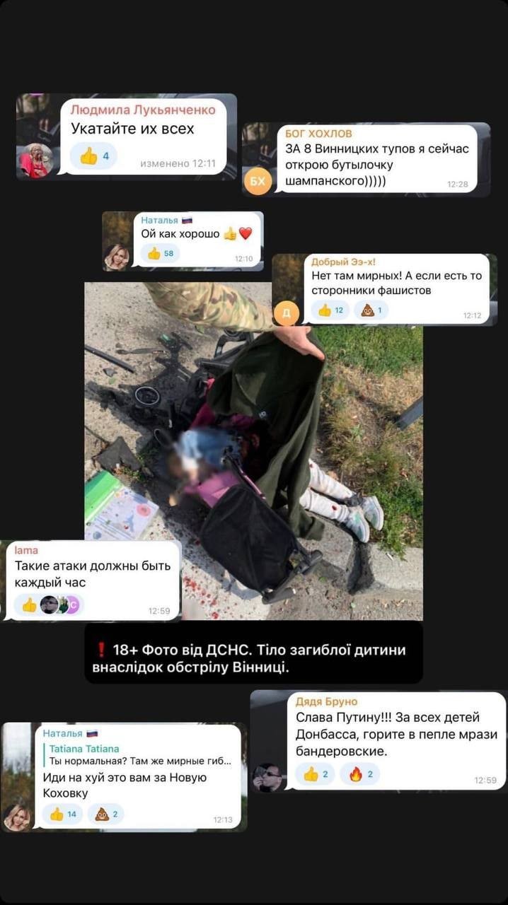 А це коментарі російських громадян під постом про загибель дитини з фото загиблої. Рашисти у своєму цинізмі перевершують фашистів.