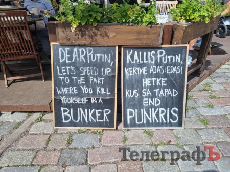 Вивіска біля кав'ярні у Таллінні: «Любий путін, давайте пришвидшимось до того моменту, коли ви вбиваєте себе у бункері»