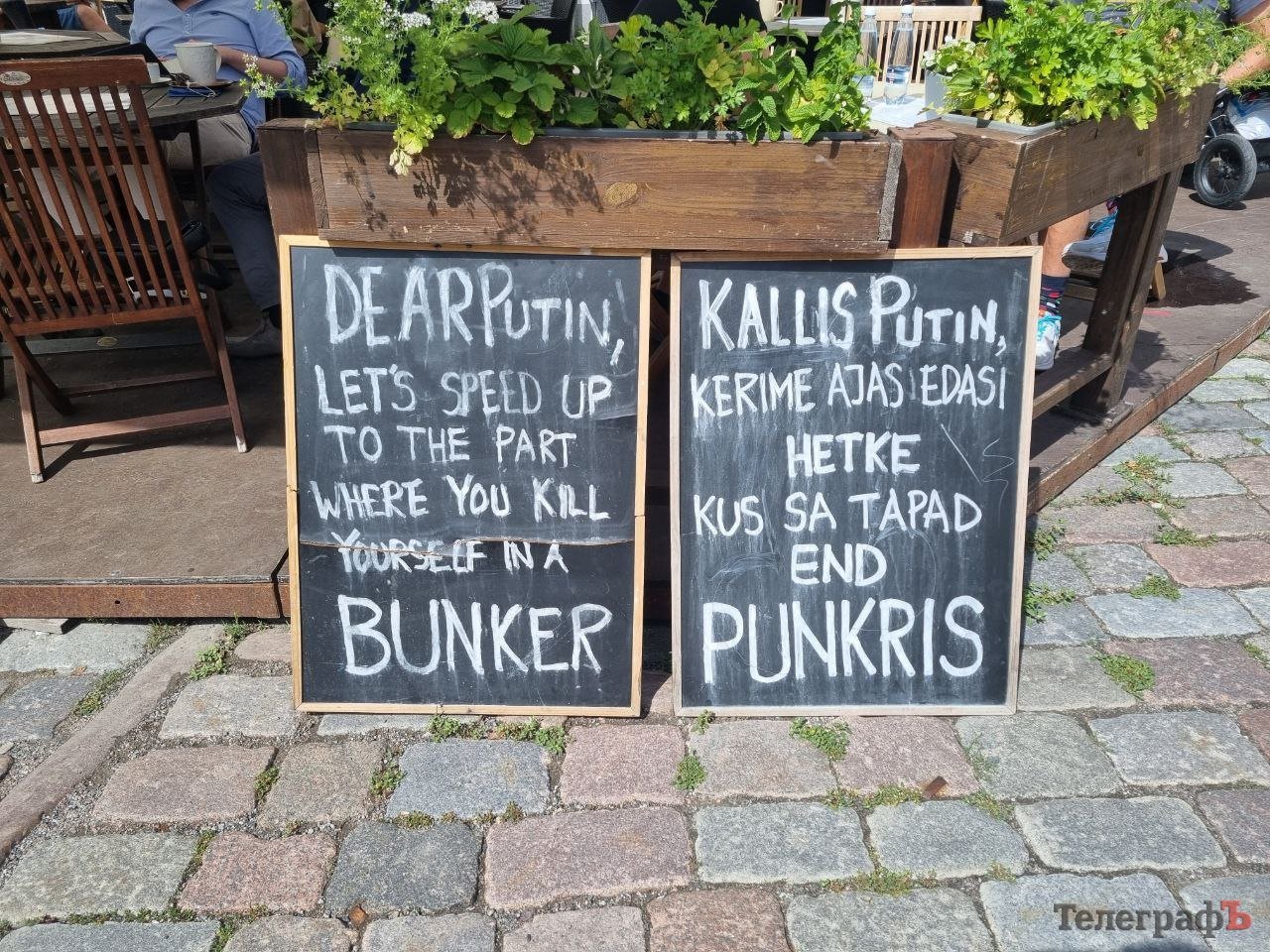 Вивіска біля кав’ярні у Таллінні: «Любий путін, давайте пришвидшимось до того моменту, коли ви вбиваєте себе у бункері»