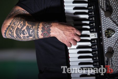 Завершили концерт на мажорній ноті. Музиканти Kozak System провели аукціон: розіграли картину кременчуцької мисткині Оксани Бойко «Охоронець долі» та жовто-блакитний стяг із автографами музикантів.