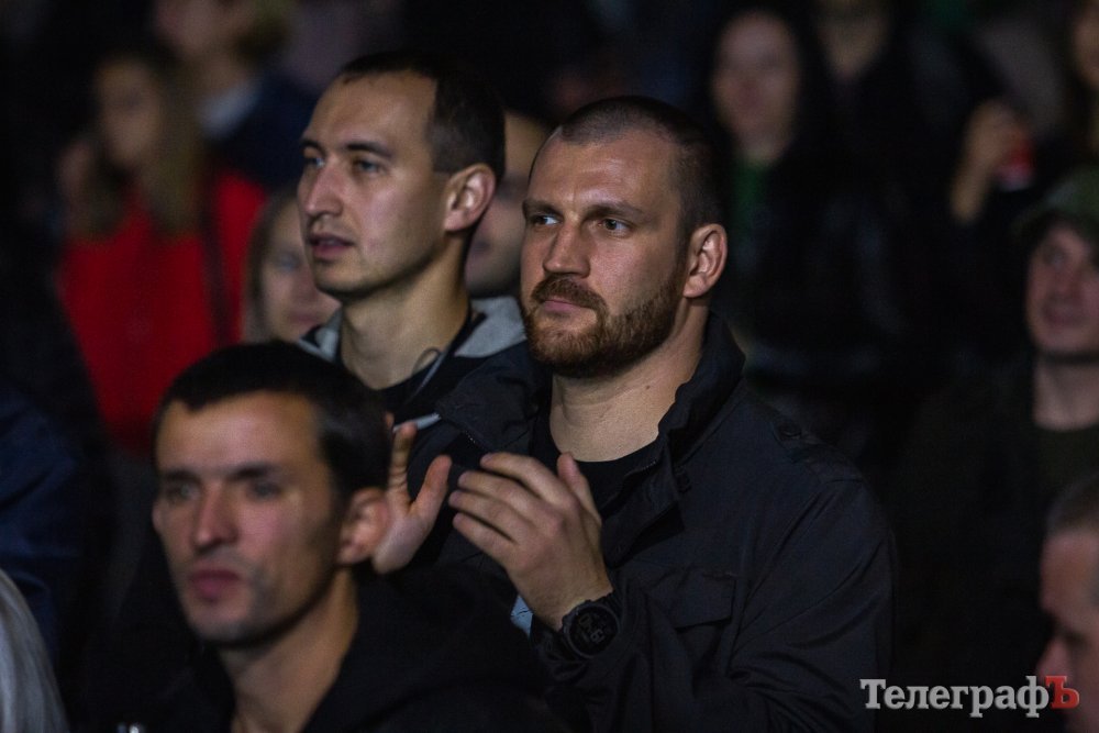 На сцену запросили керівника батальйону патрульної поліції Олександра Борзенка, який разом із солістом гурту Kozak System Іваном Леньо служать у «Хижаках».