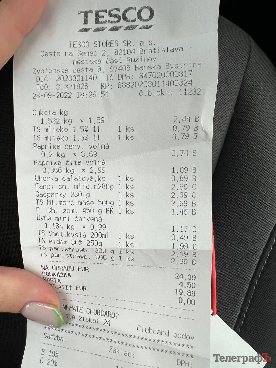 Чек з словацького супермаркета