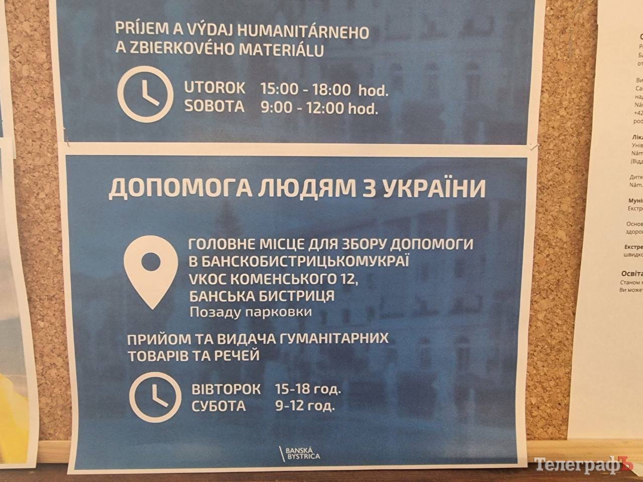 Гуманітарної допомоги вже менше, але вона є. У нашому місті її видають 2-3 рази місяць, раніше було щотижня. Можна взяти засоби гігієни, продукти, речі. Перші три місяці був дуже багатий вибір: береш, скільки треба. Але є українці, за яких бере сором. У моєму місті жінка з Західної України, яка мала тримала секодн- хенд, приходила о 5 ранку, першою займала чергу і просто загрібала все підряд. Словаки все розуміли, але нічого не могли вдіяти: вони не мали права відмовити у гуманітарній допомозі.