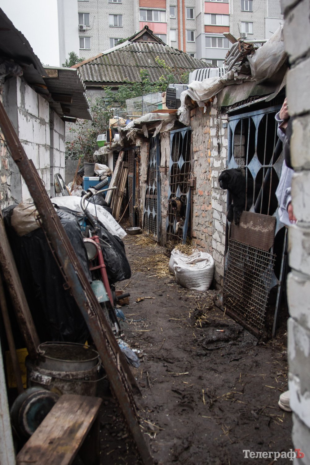 Тоді Валентина пустила комісію у свій двір, щоб представники почули, як гавкають собаки, та побачили вольєри. Також вона показала свою літню кухню, стіна якої зіпсувалася, за її словами, від того, що туди зливають нечистоти з притулку.