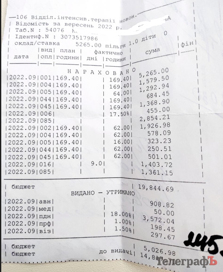31 жовтня медпрацівникам Кременчуцького перинатального центру II рівня видали зарплату за вересень. Перед виплатою зарплати на картки скинули частину авансу за жовтень. Протягом останніх місяців виплата зарплати у 4-5 траншів із затримкою майже у місяць стала поганою традицією. Хоча колективним договором виплата зарплати працівникам цього медзакладу передбачена з 1 по 10 число місяця.