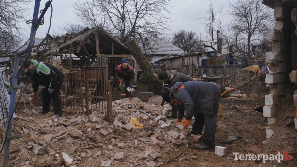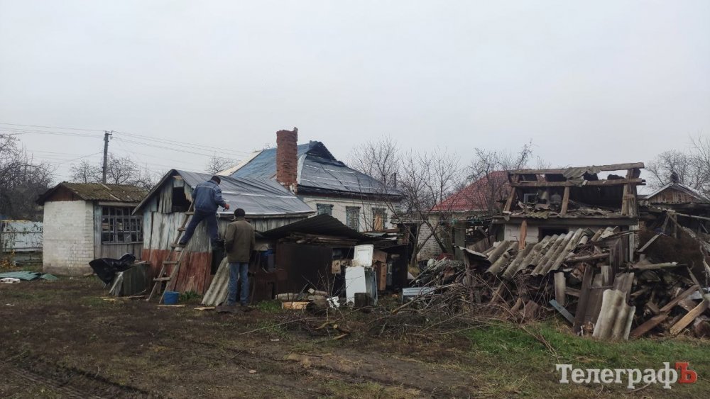 Роботи з відновлення розпочали ще з вчорашнього вечора. Сусіди притягли клейонку, й дружньо закривали вікна, хтось у сусідньому будинку допомагав знімати шифер, потрохи розбирали завали сараю. Зранку роботи продовжилися. Двір перетворився на великий мурашник. Одні чоловіки «латають» дах, інші знизу підстраховують, ще частина чоловіків та жінок розбирає завали й відрами відносить до машин, які одна за одною вивозять залишки цегли на смітник. На місці працювала газова служба та Полтаваобленерго.