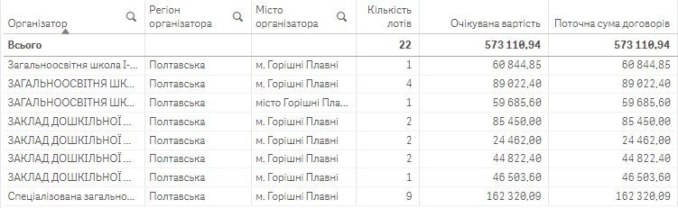У закупівлі на суму 162 тисячі гривень для ЗОШ №5 у Горішніх Плавнях увійшла й закупівля генератора за 90 тисяч гривень.