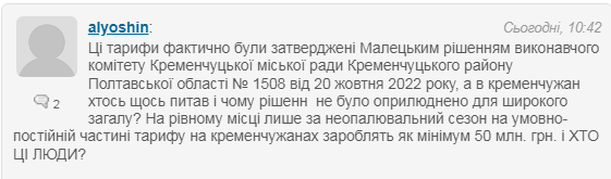 4. Не була проведена жодна роз’яснювальна робота з боку посадовців. Рішення ухвалене 20 жовтня. Тобто, у мерії вже мали розуміти, що більша частина населення отримає у грудні платіжні з новими цифрами. І ці цифри будуть значно більші за ті, на які кременчужани розраховували в умовах війни та економічної кризи розраховували. Жодного, роз’яснення з приводу тарифів з боку влади з моменту ухвалення рішення (це 1,5 місяця) ми не побачили.