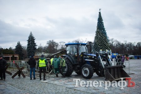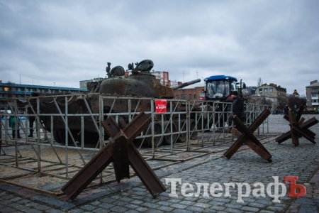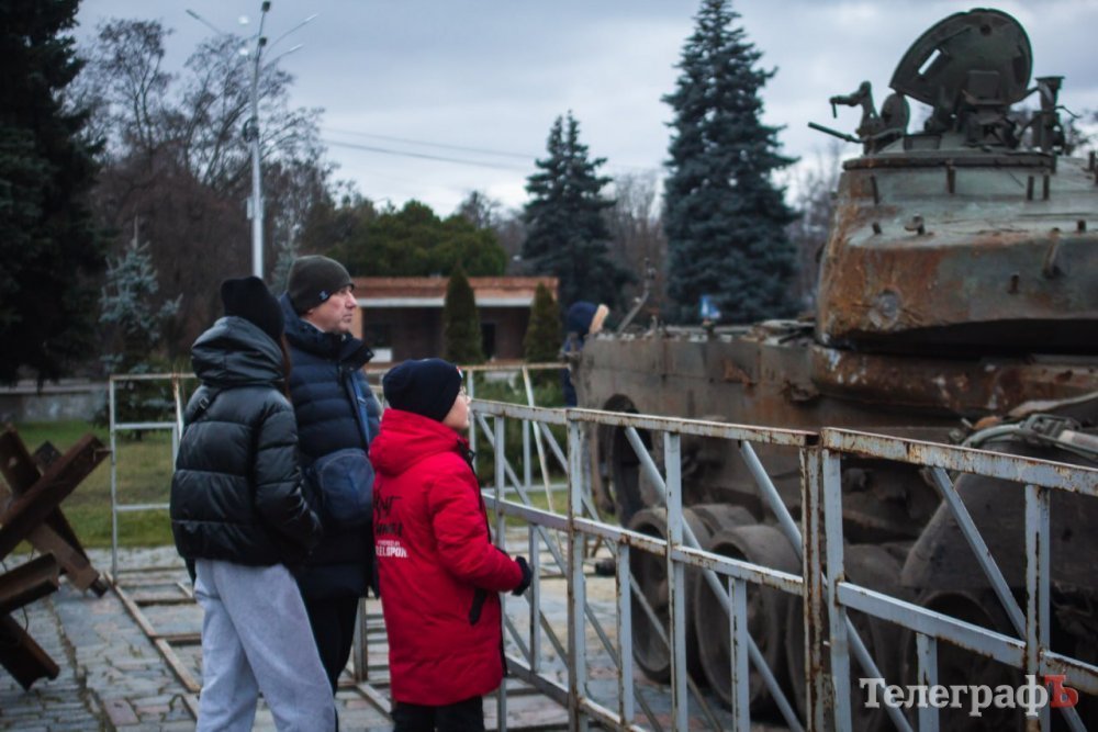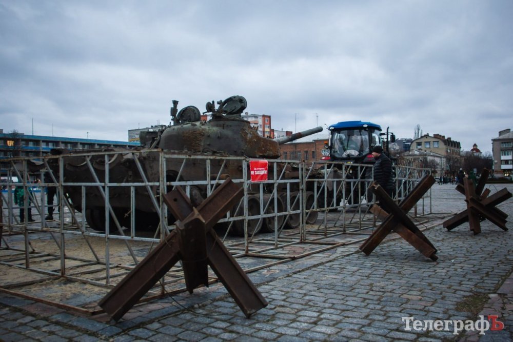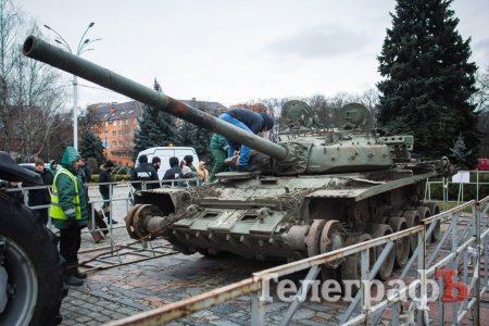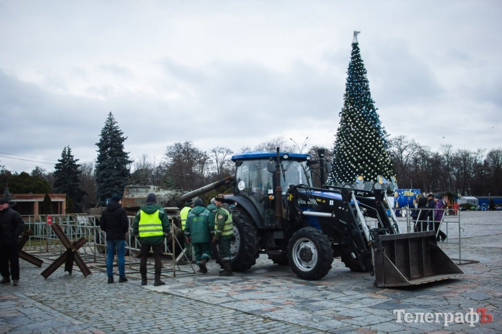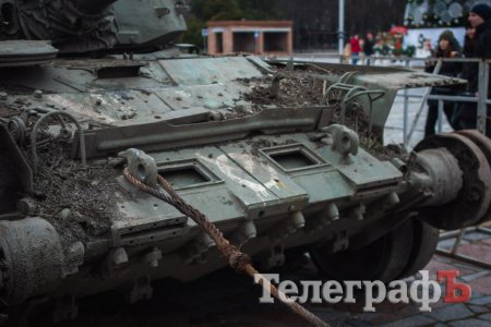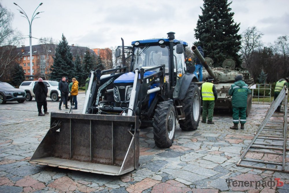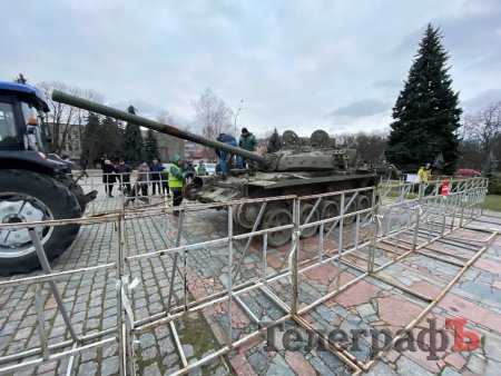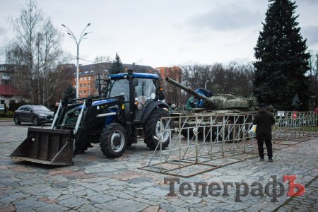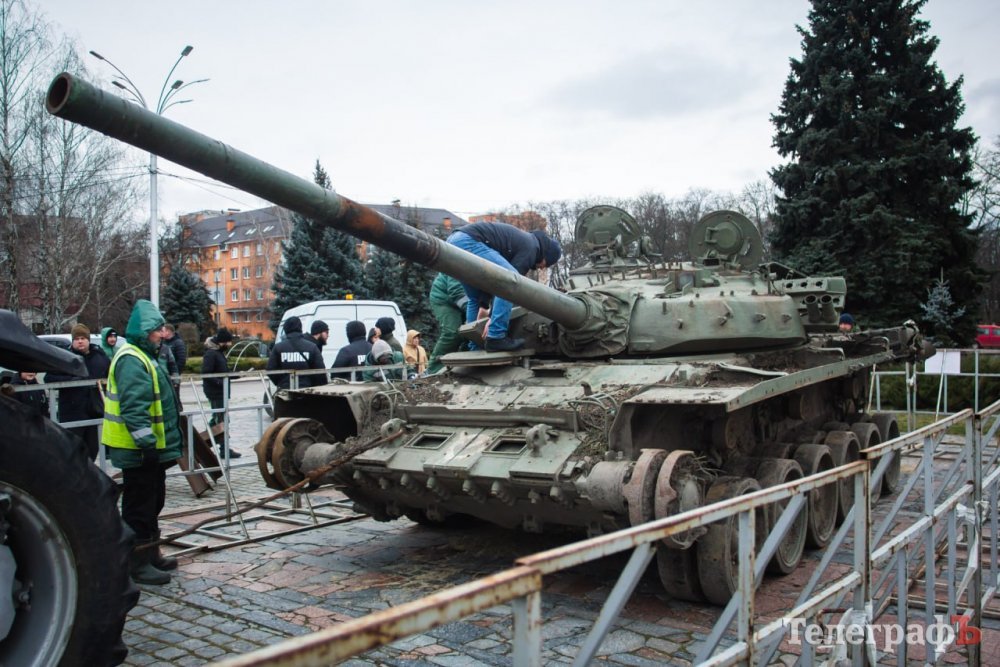 Біля головної ялинки Кременчука встановили знищений російський танк Т-72.