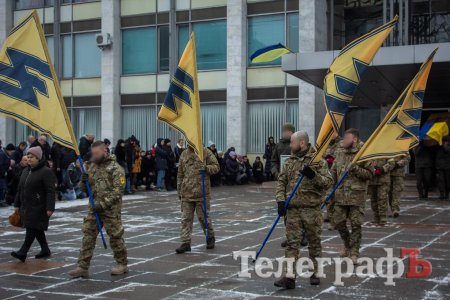 Кременчужани підносили квіти, щоб віддати шану воїну. Друзі промовили кілька слів над домовиною, яка була у формі корабля з емблемою Ідея нації та огорнута у синьо-жовтий стяг.