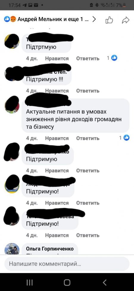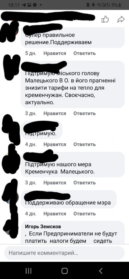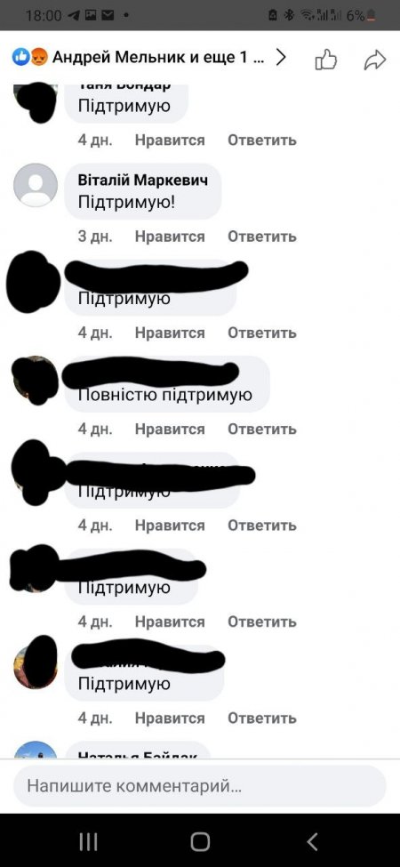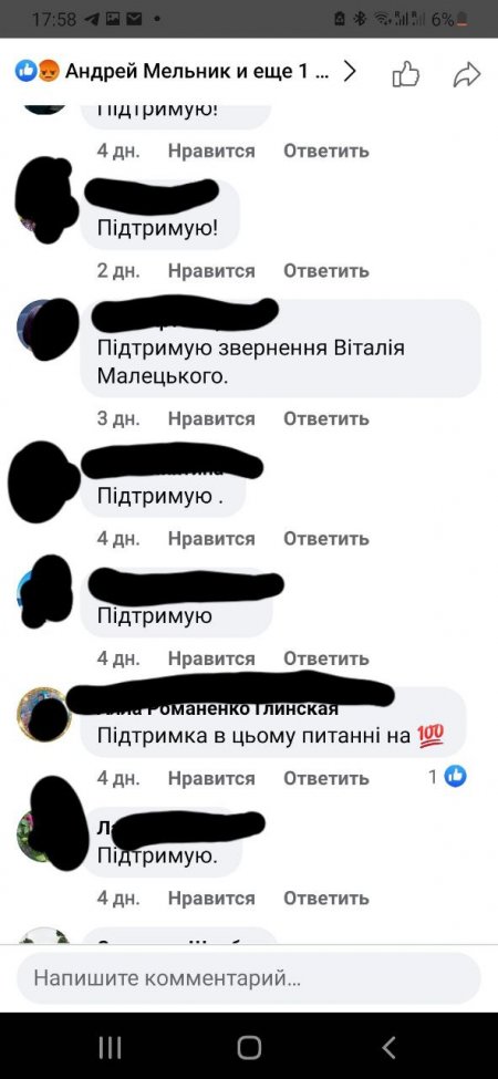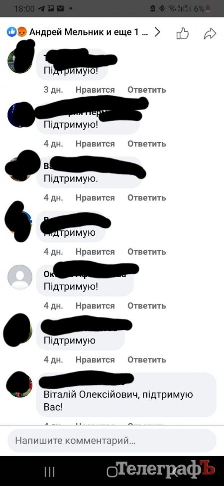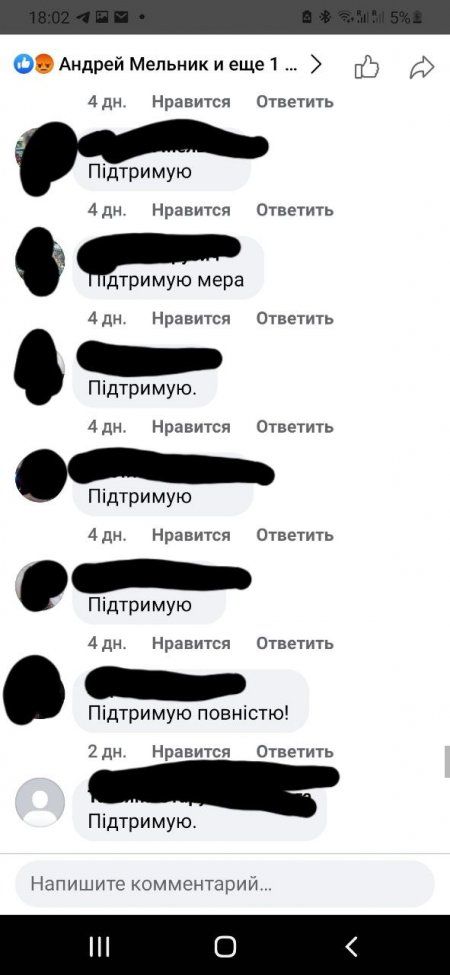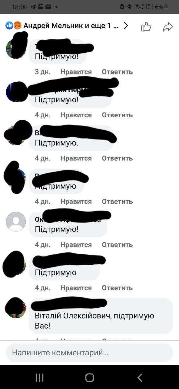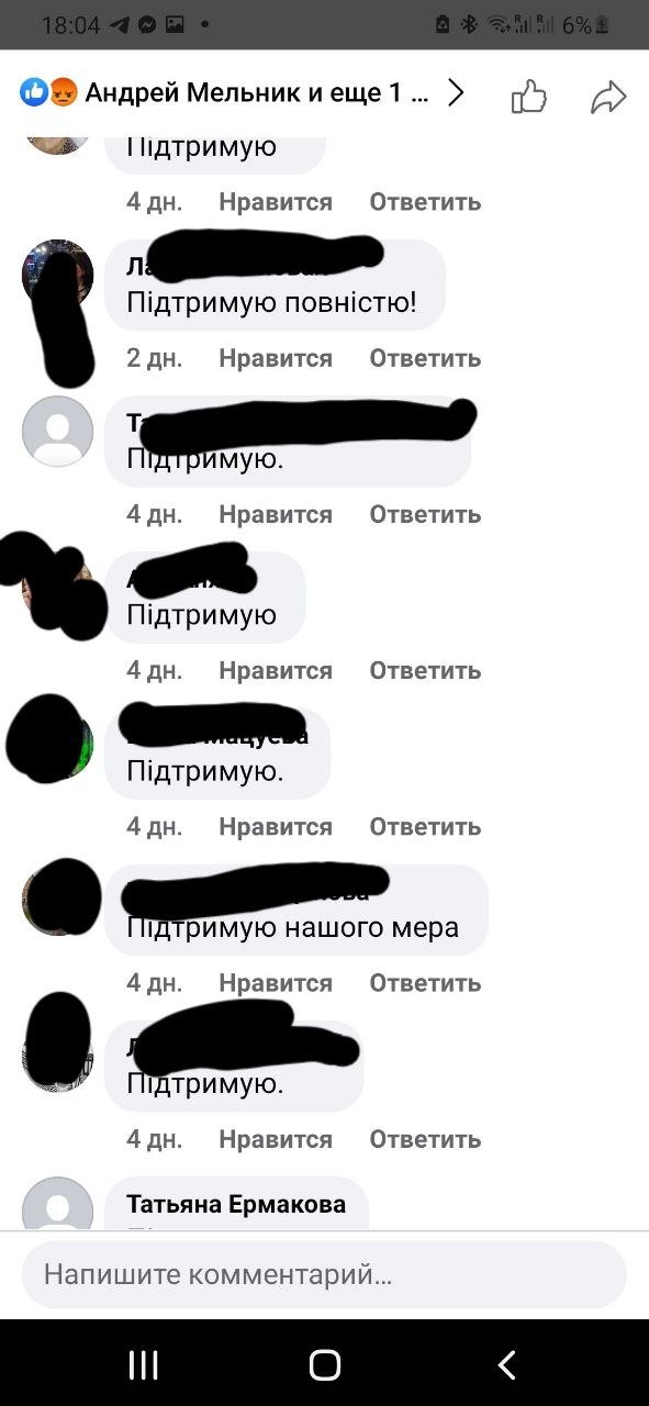 Читаємо під ним коментарі. Вкидаються в око пачками короткі коменти «підтримую», «підтримую нашого мера», «підтримую все», «підтримую звернення» (яке?), «дякую, що турбуєтесь за мешканців нашого міста»...