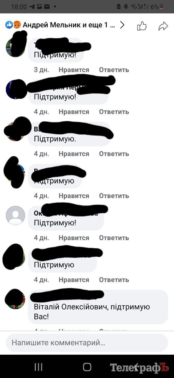 Читаємо під ним коментарі. Вкидаються в око пачками короткі коменти «підтримую», «підтримую нашого мера», «підтримую все», «підтримую звернення» (яке?), «дякую, що турбуєтесь за мешканців нашого міста»…