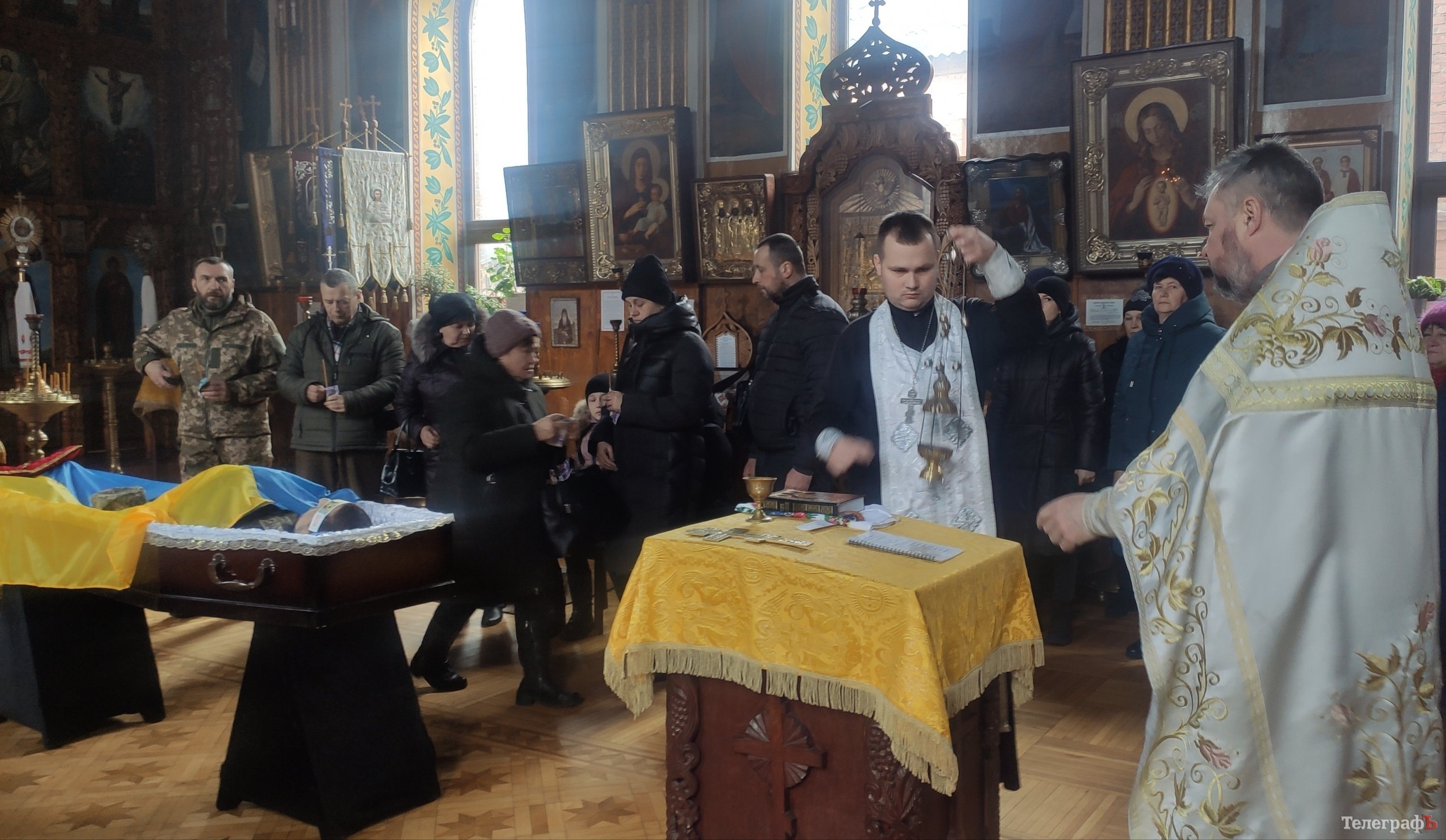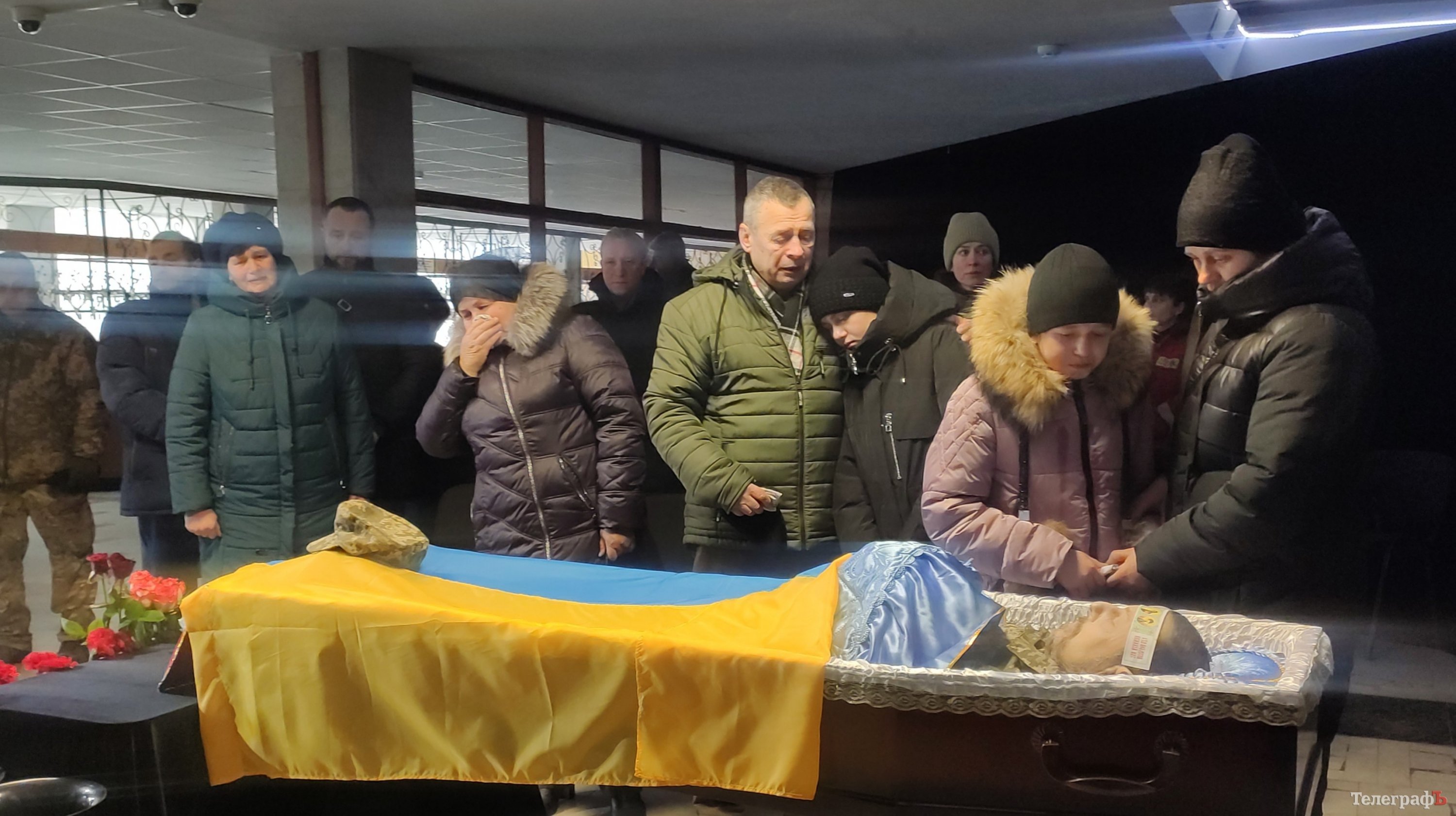 Над домовиною огорнутою у синьо-жовтий стяг схилилася дружина та дві неповнолітні доньки, які чекали вдома на свого татка.