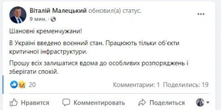 О 6.55 у Кременчуці почали вити сирени. О 7.05 все повторилося. В Україні ввели воєнний стан, працювали тільки об'єкти критичної інфраструктури, а громадян прохали без нагальної потреби не покидати домівки.