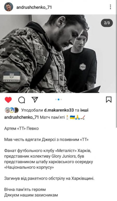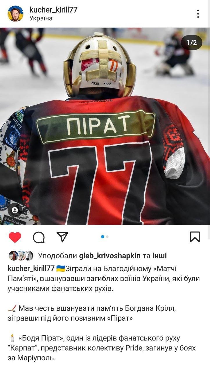 Хокейні команди «Кременчук» і «Сокіл» вшанували Героїв, граючи в хокейних джерсі з позивними бійців. Серед загиблих є оборонці Маріуполя та військовий з Полтавщини Євген «Малі» Брах, який служив у Французькому легіоні. Представники «Соколу» вийшли у джерсі з псевдо фанатів «Динамо», а «Кременчука» — фанатів «Металіста» та «Карпат».